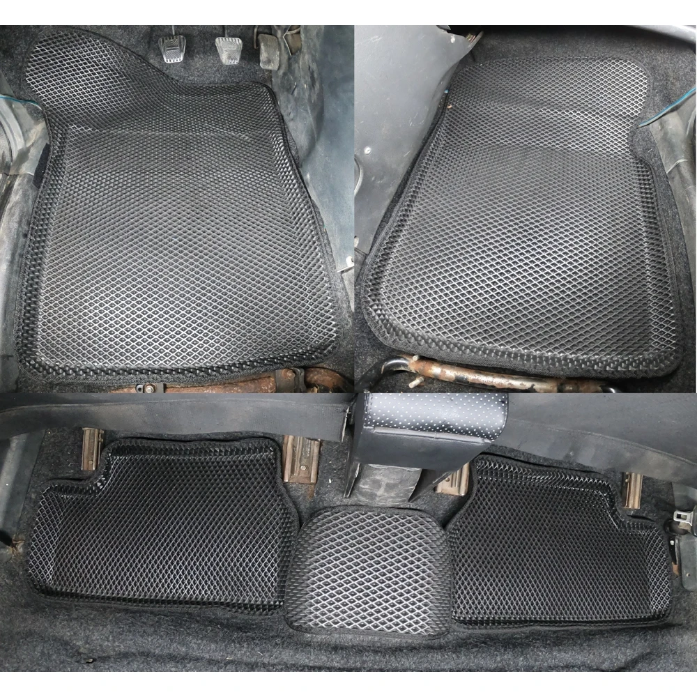 Новинка мира ковров! Коврики с Пресс Бортами. На данный момент мы являемся единственным производителем, кто формует коврики прессом, а не вручную. За счет чего борта получаются идеально ровные и не искажаются ячейки на материале. Так же за счет того, что коврики делаются специальным прессом, мы можем поставить цену на много ниже чем у остальных за счет экономии на рабочей силе. Формованные коврики EVA выполнены из приятного и лёгкого материала Ethylene Vinyl Acetate, который обеспечивает постоянный комфорт и удобство. Глубокая ячеистая структура хорошо удерживает воду и мусор даже во время активного вождения автомобиля. Чтобы очистить коврики от скопившейся грязи, достаточно перевернуть их. Материал ковров прекрасно переносит высокие и низкие температуры, спокойно переносит контакты с химическими реагентами. Не деформируется и не пахнет при жаре до +50 °С, не становится хрупким и не трескается при морозе до -40 °С. Основной идеей данных ковров является то, что данные ковры можно эксплуатировать без бортов, ведь вся влага собирается в самой текстуре ковриков. Вкупе с этим, данные коврики очень легко вытряхиваются от грязи. Все это работает если пол автомобиля полностью ровный, в том числе под педалями. Если же пол автомобиля не ровный, то влага, собирающееся на неровностях будет стекать в соседние соты, а затем за пределы коврика, что недопустимо. Именно поэтому начали появлятся eva 3d коврики. Коврики, которые повторяют контур пола автомобиля, со всеми его неровностями. Это гарантирует задержку влаги и грязи в пределах ковриков, да и к тому же такие коврики более лаконично смотрятся в салоне авто.