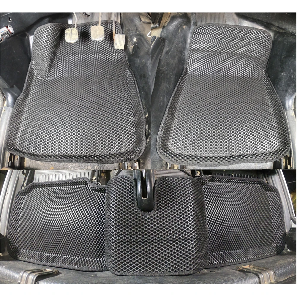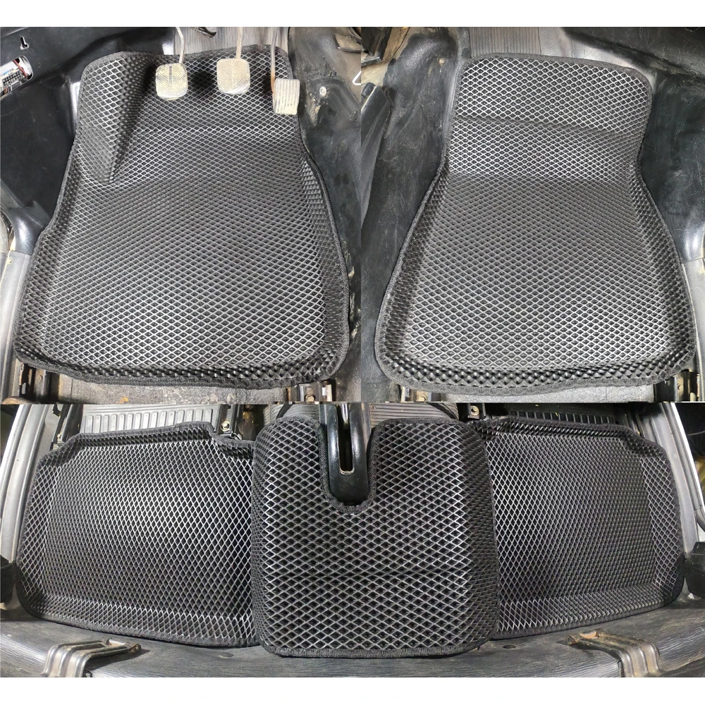 Новинка мира ковров! Коврики с Пресс Бортами. На данный момент мы являемся единственным производителем, кто формует коврики прессом, а не вручную. За счет чего борта получаются идеально ровные и не искажаются ячейки на материале. Так же за счет того, что коврики делаются специальным прессом, мы можем поставить цену на много ниже чем у остальных за счет экономии на рабочей силе. Формованные коврики EVA выполнены из приятного и лёгкого материала Ethylene Vinyl Acetate, который обеспечивает постоянный комфорт и удобство. Глубокая ячеистая структура хорошо удерживает воду и мусор даже во время активного вождения автомобиля. Чтобы очистить коврики от скопившейся грязи, достаточно перевернуть их. Материал ковров прекрасно переносит высокие и низкие температуры, спокойно переносит контакты с химическими реагентами. Не деформируется и не пахнет при жаре до +50 °С, не становится хрупким и не трескается при морозе до -40 °С. Основной идеей данных ковров является то, что данные ковры можно эксплуатировать без бортов, ведь вся влага собирается в самой текстуре ковриков. Вкупе с этим, данные коврики очень легко вытряхиваются от грязи. Все это работает если пол автомобиля полностью ровный, в том числе под педалями. Если же пол автомобиля не ровный, то влага, собирающееся на неровностях будет стекать в соседние соты, а затем за пределы коврика, что недопустимо. Именно поэтому начали появлятся eva 3d коврики. Коврики, которые повторяют контур пола автомобиля, со всеми его неровностями. Это гарантирует задержку влаги и грязи в пределах ковриков, да и к тому же такие коврики более лаконично смотрятся в салоне авто.