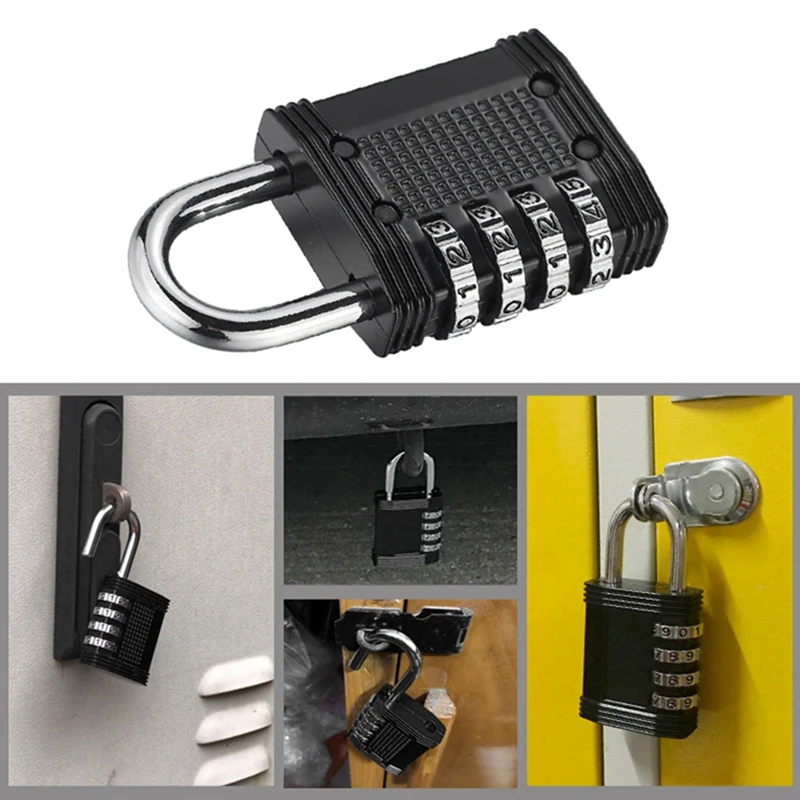 Широкое применение: замок с 4 циферблатами с сочетанием идеально подходит как для внутреннего, так и для наружного использования, например, шкафчик для спортзала, школа и шкафчик для работников, шкаф, кладовка, ящик для инструментов, ворота и дверной замок, гараж, сарай, забор и общее хранение.