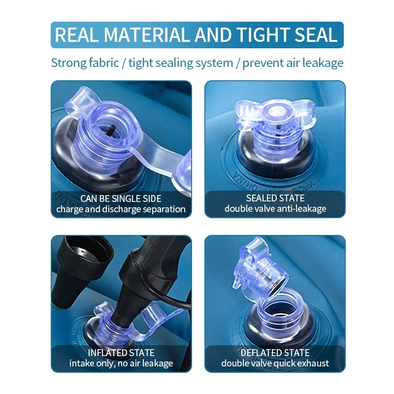Мягкие материалы: Наша дорожная кровать изготовлена из высококачественного ПВХ с мягкой Флокированной поверхностью. Когда вы чувствуете усталость, вы можете лежать на автомобильном воздушном матраце удобно и уютно, чтобы наслаждаться звуковым сном.