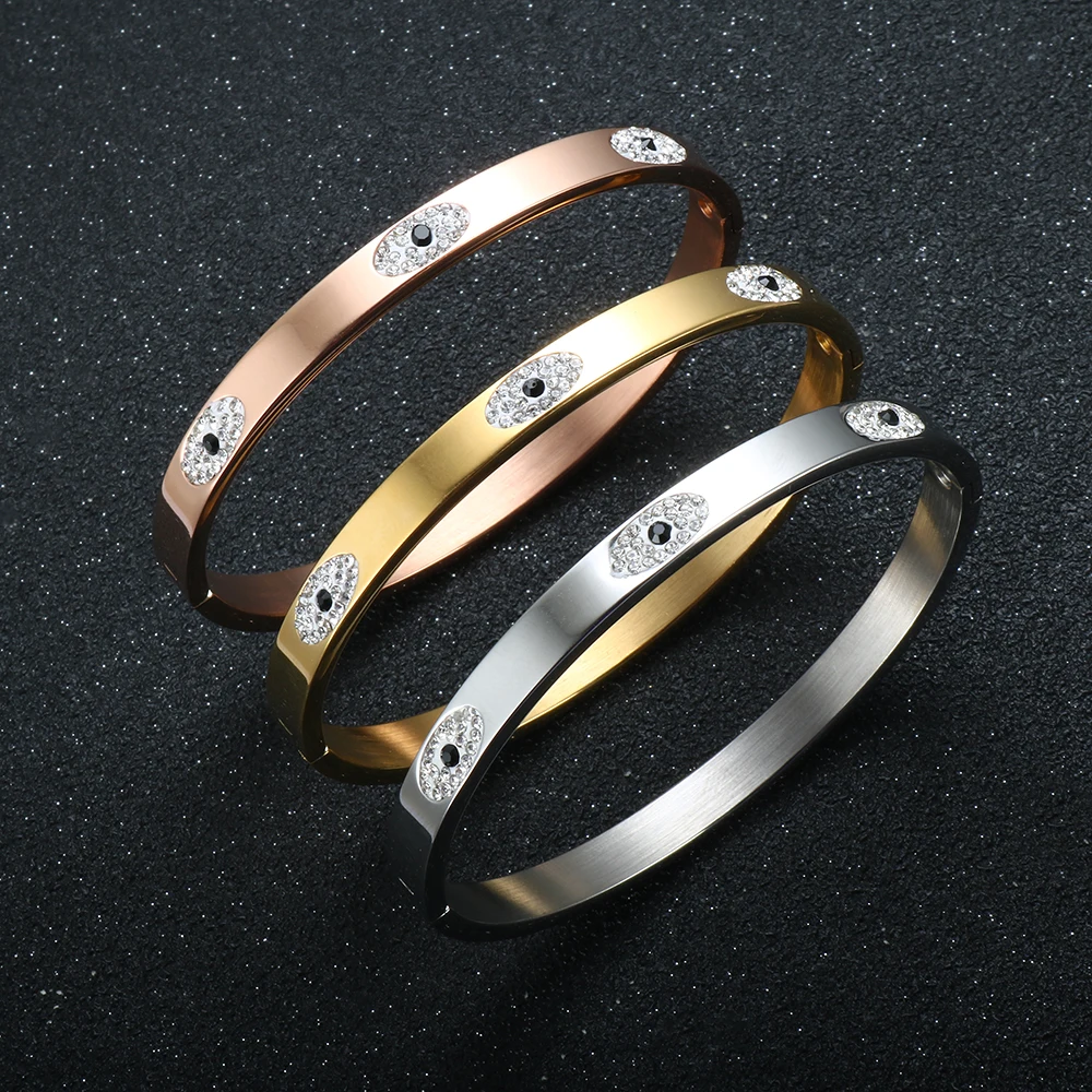 Новый трендовый браслет с голубыми глазами, роскошный Кристальный Браслет-манжета для женщин и мужчин, браслеты из нержавеющей стали для влюбленных, ювелирное изделие, подарок