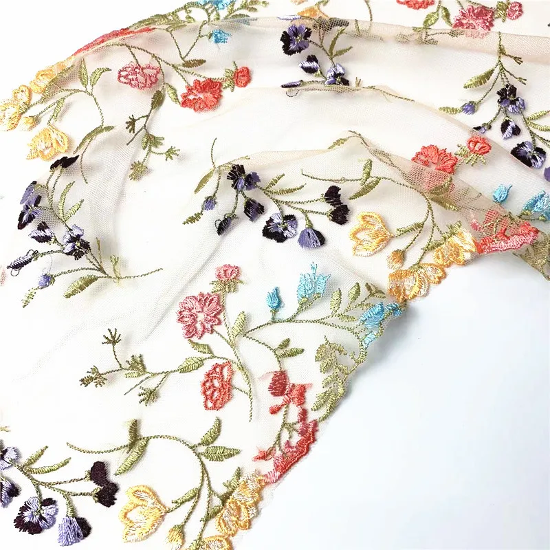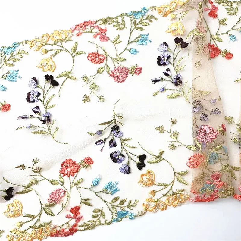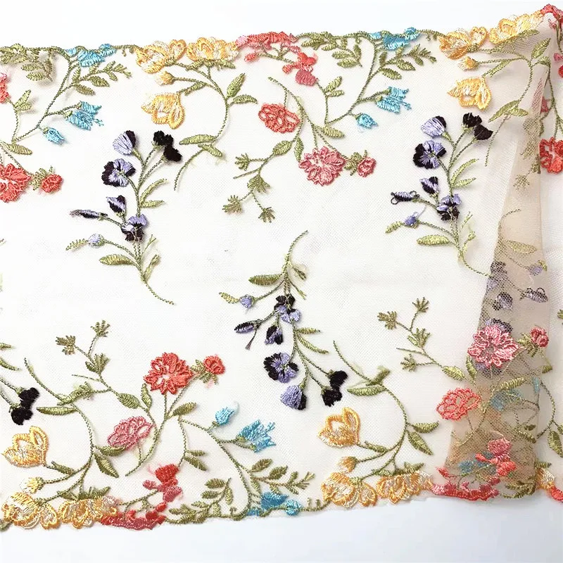 17 см/24 см Широкий разноцветный тюль вуаль кружевная ткань вышивка 3d Цветы лента с бахромой свадебное платье вуаль DIY шитье гипюр Декор