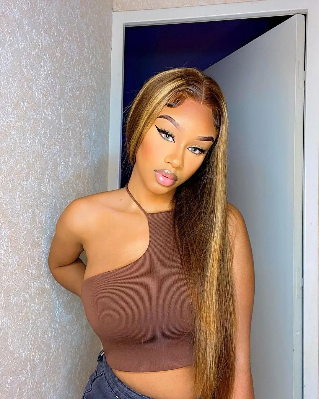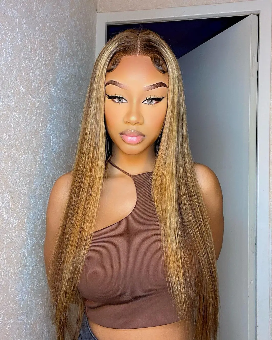 Выделите P 4/27 парик с фронтальным кружевом человеческие волосы для черных женщин prepucked бразильские прямые человеческие волосы парик 13x4 Цвет пианино Remy