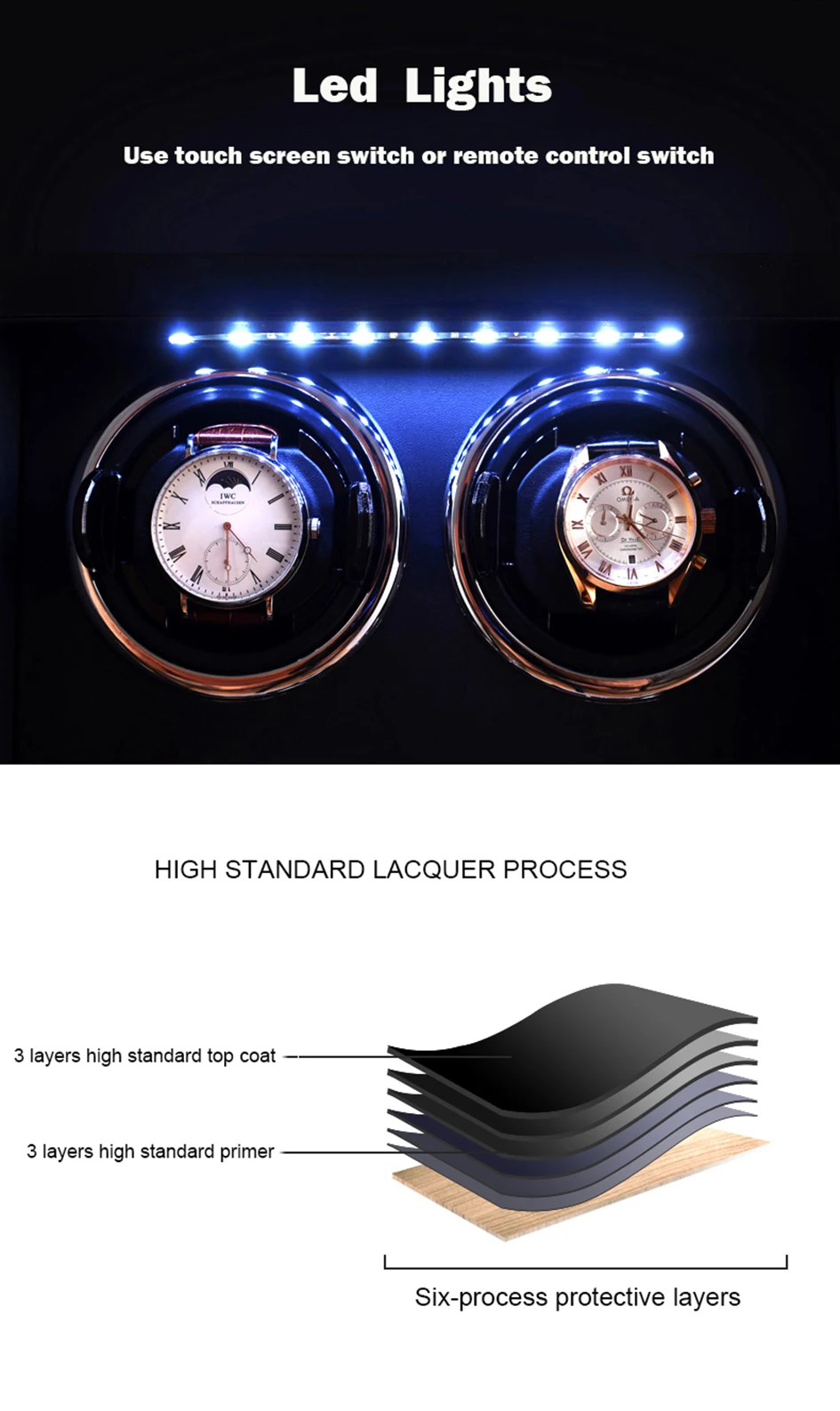 Особенности: ЖК-дисплей с сенсорным экраном и светодиодный светильник. Управление сенсорным ЖК-экраном позволяет настроить каждый намоточный прибор на нужные настройки для ваших часов. Встроенный светодиодный светильник освещения и цифровой дисплей, вы можете получить ваши часы точно и быстро даже в темноте. Подходит для большинства часов. Регулируемые и гибкие часы подушки для различных размеров часов. Видимое стекло закаленное для хорошей защиты.