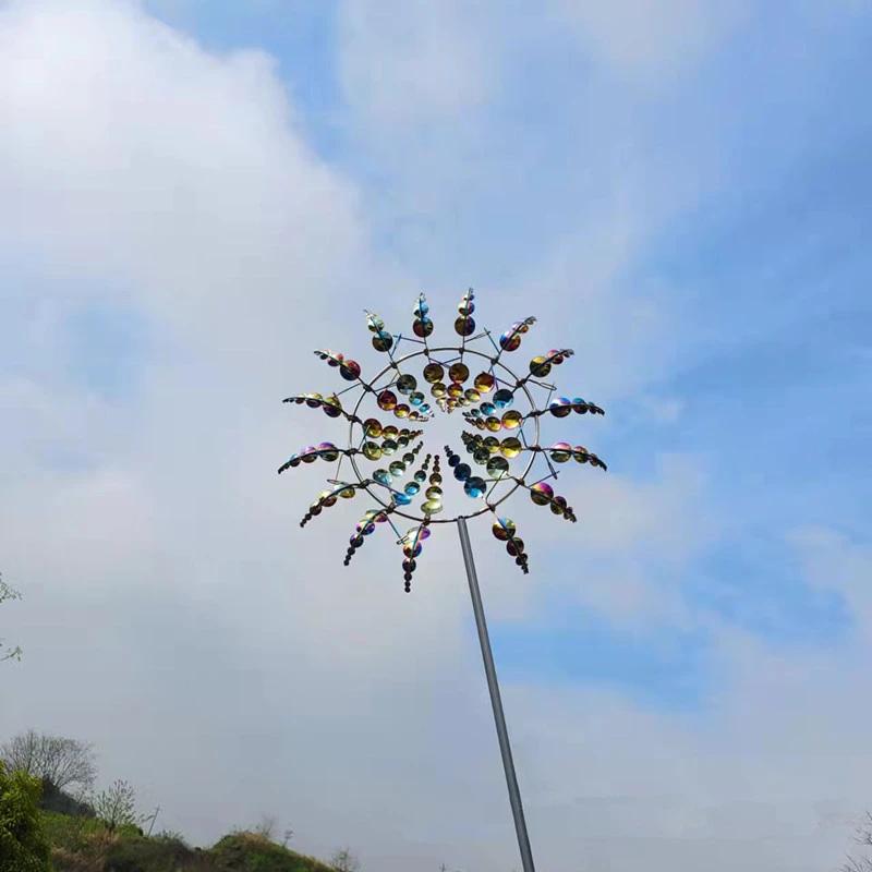 Наш кинетический металлический вертушка с разноцветным матовым покрытием и стабильными сваями на основании, который может выдерживать любую погоду, прочный и долговечный, может использоваться в ветреные дни.