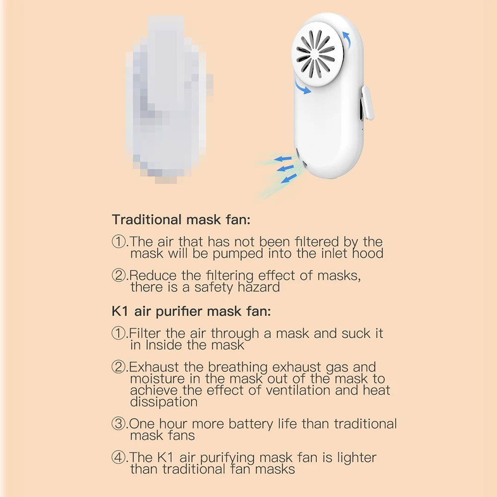 ![]() K1 портативный многоразовый вентилятор для маски для лица с зажимом, летний переносной воздушный фильтр с воздушным охлаждением, персональные Мини-вентиляторы с USB Характеристика: Трехскоростная Регулируемая ветровая мощность, четырехъядерная ветровая мощность, Высокопрочное всасывание. Быстро выводит углекислый газ, влагу и тепло от маски. Сохраните ваше лицо свежим. Легкий и компактный. Портативный мини-дизайн. С зажимом, удобно носить и циркулировать воздух в маске. Его можно заряжать через usb-кабель. Этот вентилятор циркуляции воздуха со встроенной литиевой батареей является энергосберегающим и экологически чистым. Высокая эффективность и низкий уровень шума. Защитный чехол для зарядки. Силиконовый защитный чехол для зарядки мягкий и обладает отличной высокой и низкой термостойкостью для предотвращения случайного попадания воды в usb-порт и защиты usb-порта от повреждений. Зарядный порт Type-C. Разъемы Type-C меньше стандартных usb-разъемов, что экономит пространство. С до 10000 раз вязки жизнь и прочность слепой сопрягать конструкции. Индикатор зарядки. Пользователь более четко определяет мощность продукта, красный светильник включен во время зарядки, индикатор завершения зарядки выключен. Изготовлен из прочного жесткого пластика. Можно разместить в офисе, гостиной и спальне. Подходит для подарков на день Святого Валентина, подарков на день рождения, рождественских подарков и подарков на Хэллоуин. Спецификация: Название продукта: очиститель воздуха маска, веер Модель продукта: K1 Материал изделия: абс + ПП + электронные компоненты + силикон Цвет: черный, белый (по желанию) Время зарядки: 1 час Емкость аккумулятора: 270 мА Батарея напряжение: 3,7 V Номинальная мощность: 0,5 W Входной ток/напряжение: 5 в пост. Тока/85 мА Рабочее напряжение: Первая передача: 3,5 В, ток 115ма, Скорость 5500 Вторая передача: 4,1 V, ток, 137mA, скорость 6700 Три передачи: 4,1 V, ток, низкая скорость 3.3mA, высокий ток 147mA, скорость 6700 Время работы: Первая передача: 2 часа 36-44 минут Вторая передача: 2 часа 06 минут-11 минут Третья передача: 3 часа 40-47 минут Вес нетто продукта: 20,6 г Размер изделия: 16*28*64 мм Преимущество: Традиционная маска, веер: 1. Воздух, который не был фильтруется маской, будет накачиваться в впускной капот; 2. Уменьшает фильтрационный эффект маски, и существует опасность для безопасности. K1 воздуха Очищающая маска, веер: 1. Фильтровать свежий воздух снаружи через маску и всасывать его в впускной капот. 2. Вытяните дыхательный выхлопной газ и влагу в маске из маски для достижения эффекта вентиляции и рассеивания тепла. 3. На один час дольше срока службы батареи, чем у традиционных масок. 4. K1 воздуха Очищающая маска, веер легче, чем традиционные кожух вентилятора. Примечание: В связи с различиями мониторов и эффектами освещения реальный цвет товара может немного отличаться от цвета на фотографиях. Спасибо! Возможны отклонения в 1-2 см вследствие измерений вручную. ![]() 1 х вентилятор 1 X зарядный кабель