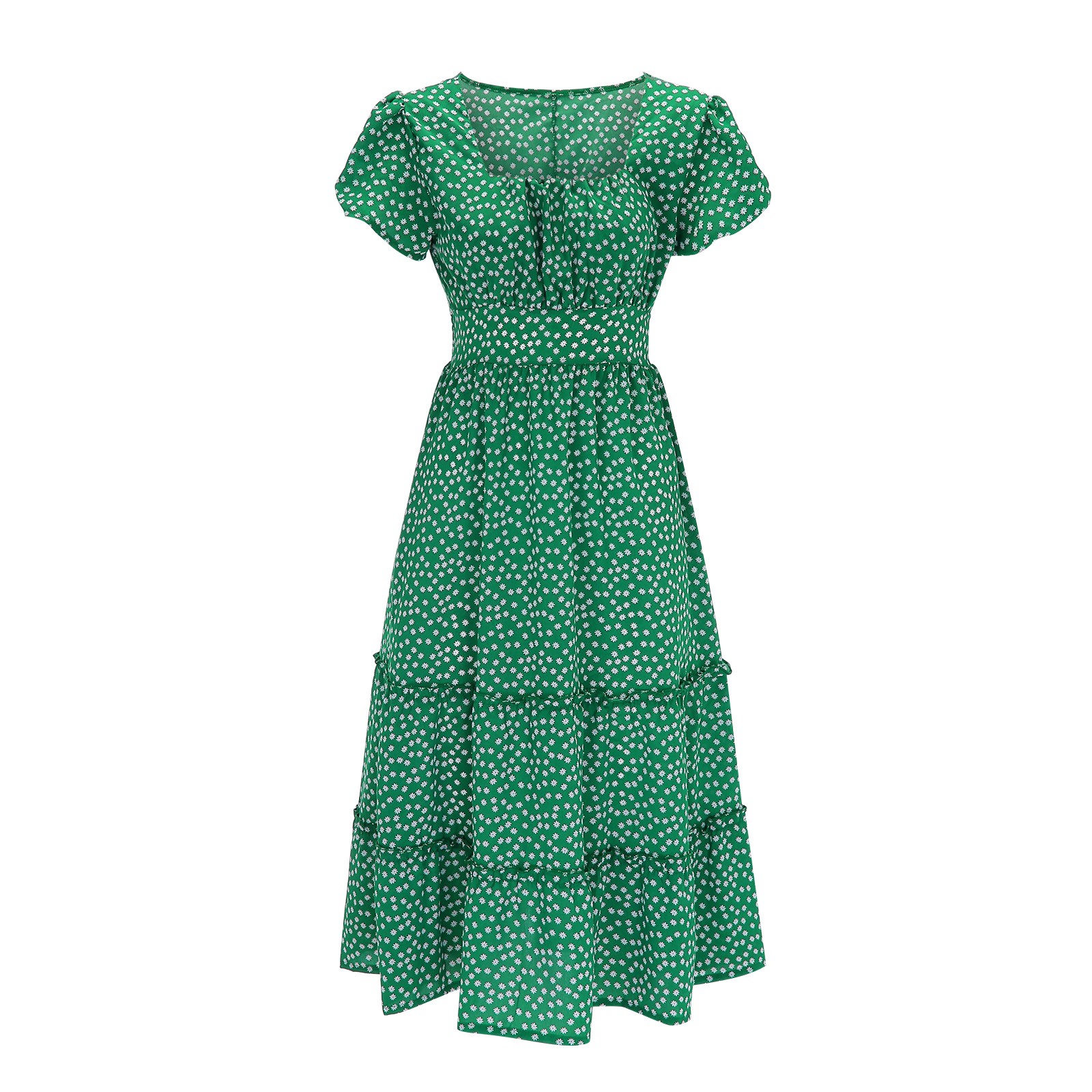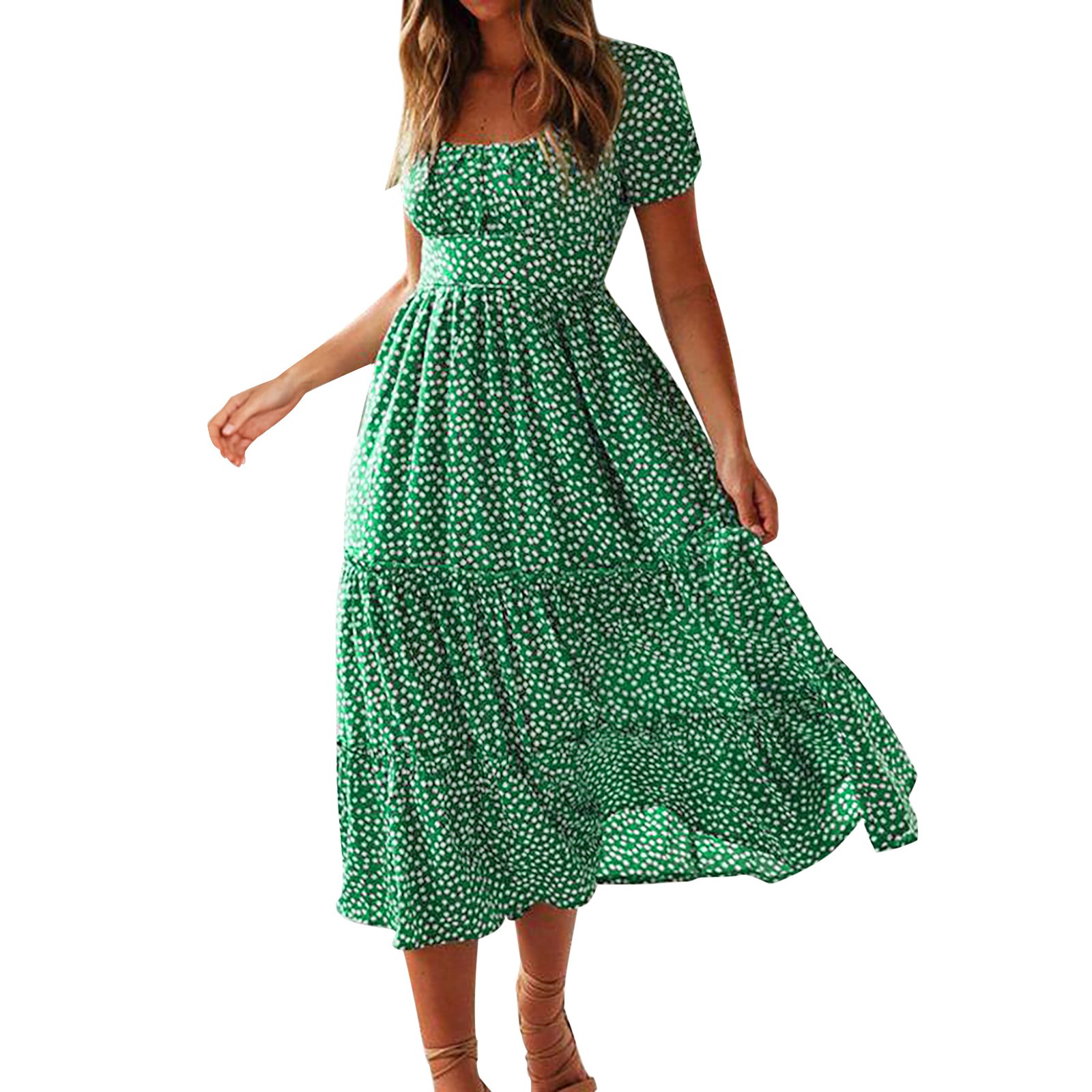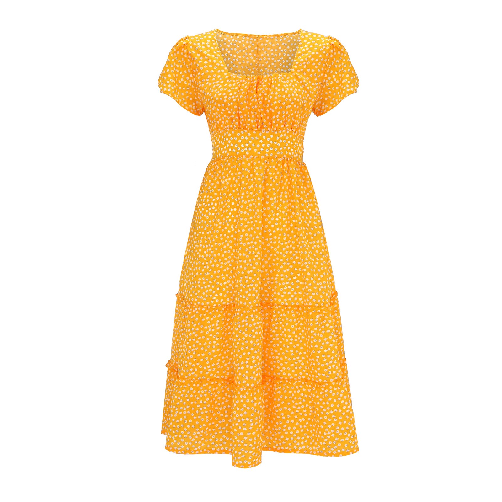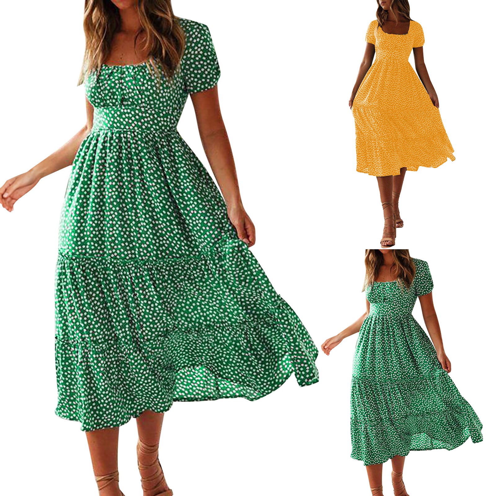 Особенности, женские платья, летние платья для женщин, пляжные платья для женщин, квадратный вырез, Эластичная отделка, короткие рукава-фонарики с эластичным манжетом, завязывается на спине, эластичная высокая талия, присборенная сзади Талия, цветочный принт, оборки, подол и форма линии длина выше колена