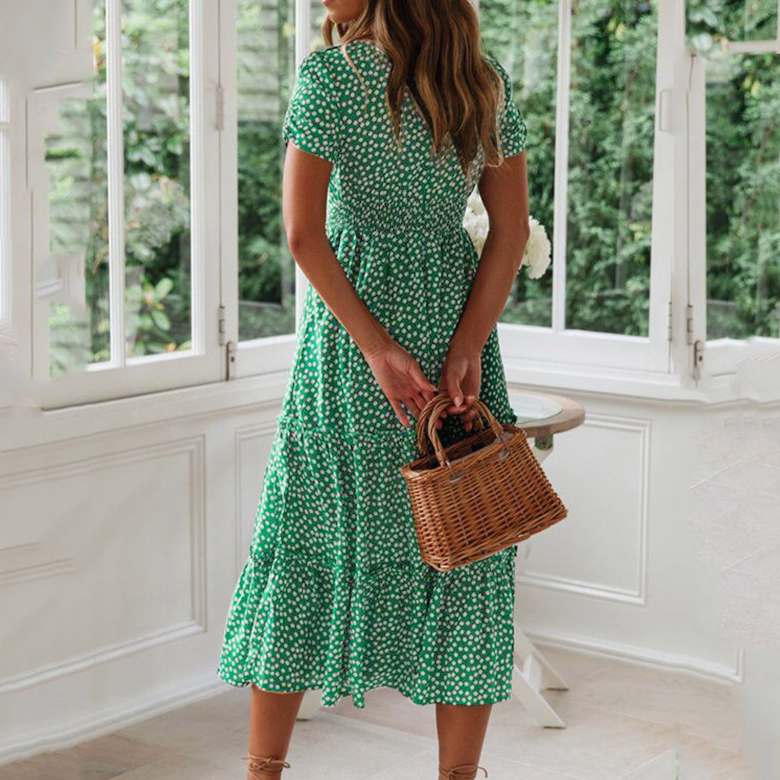 Женское Короткое платье из мягкого и легкого материала идеально подходит для теплых летних дней. Очень приятный на ощупь светильник, приятный на ощупь. Летнее платье особенно привлекательно с цветочным принтом и лучше, чтобы увидеть проблему