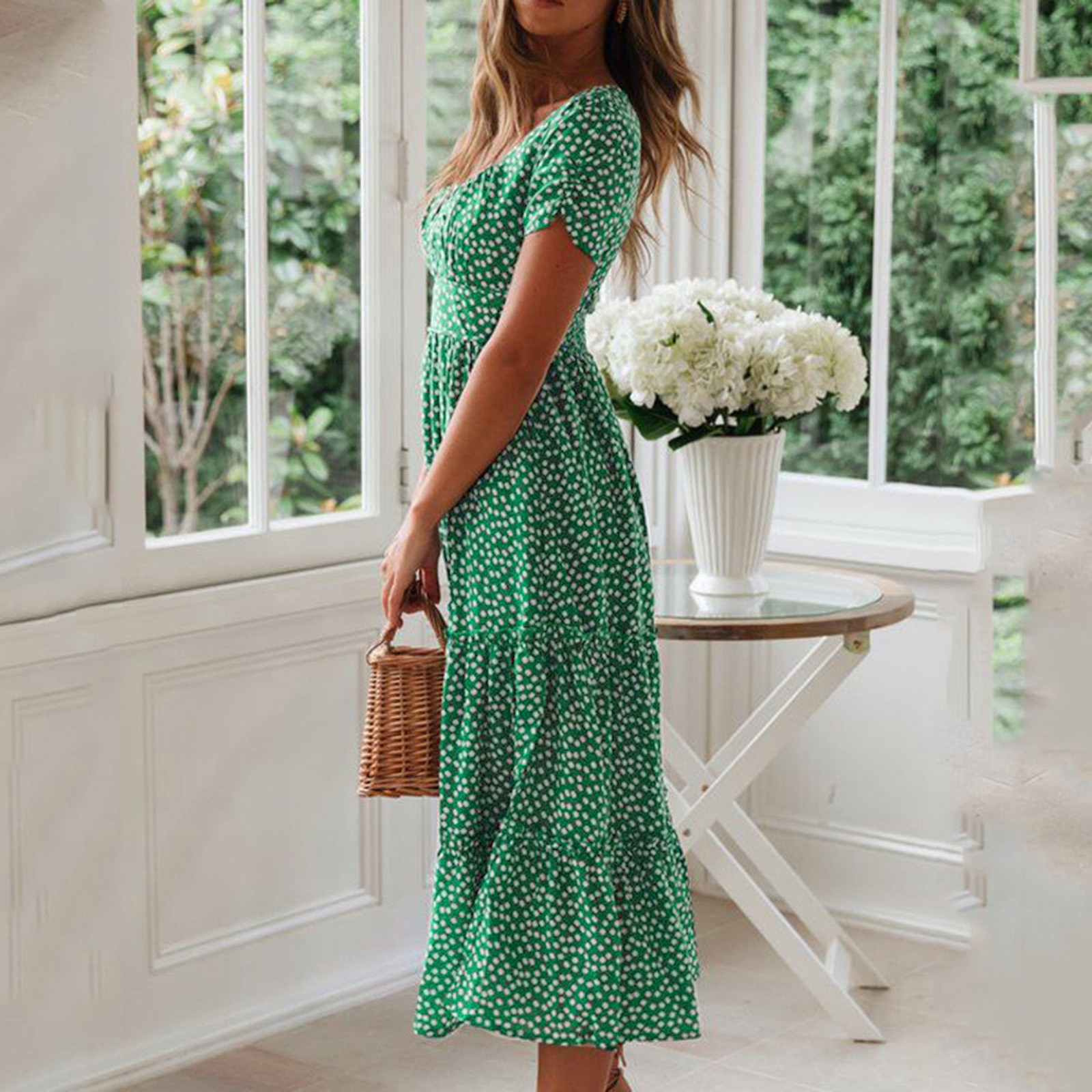 Летнее платье с цветочным рисунком-идеальный выбор для жарких летних дней. Сексуальный дизайн с открытой спиной и завязкой на спине придает платью индивидуальность. С романтичным цветочным принтом, милыми короткими рукавами-фонариками, квадратным вырезом в стиле ретро и эластичной резинкой на талии, платье выглядит высокого качества и особенно женственно.