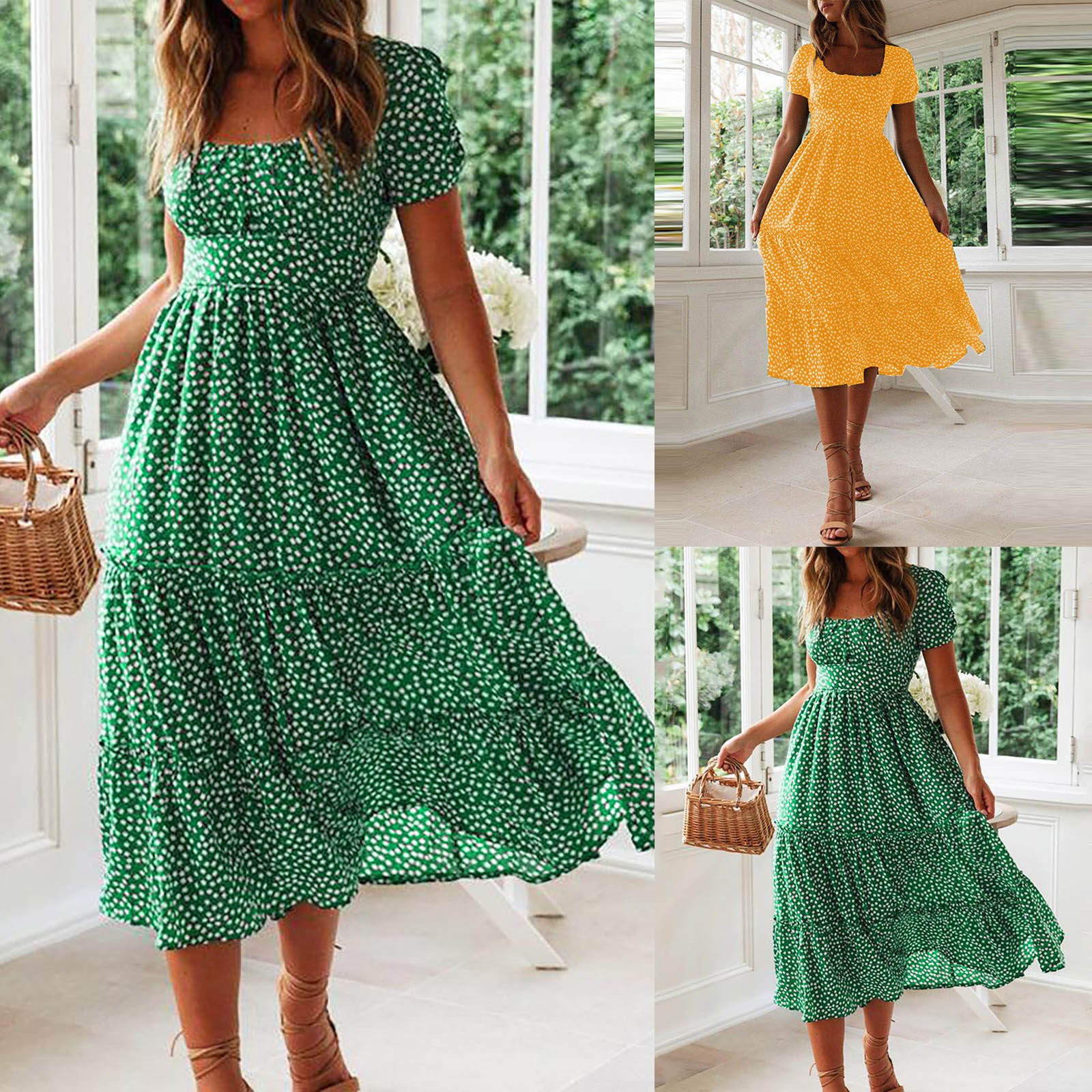 Свободное женское Повседневное платье, это платье с квадратным вырезом или открытыми плечами может создать другой внешний вид. Юбка-трапеция с оборкой на подоле обеспечивает великолепный силуэт, визуально удлиняет туловище и делает ваши ноги более длинными