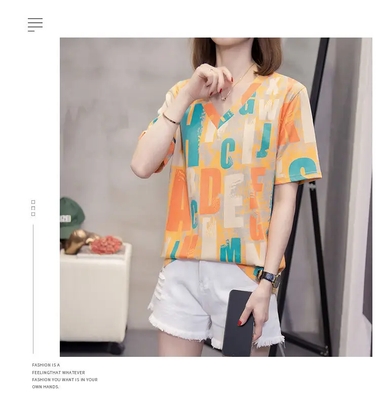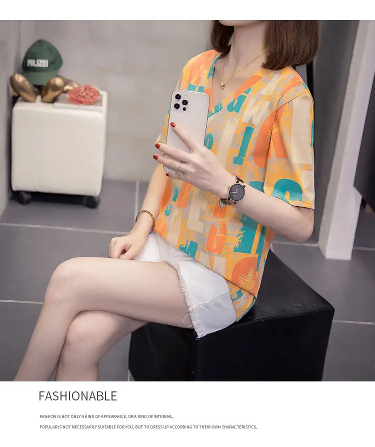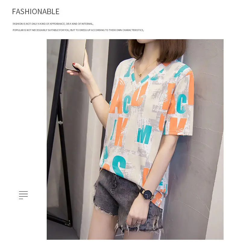 Футболка женская оверсайз с V-образным вырезом базовая Повседневная Свободная