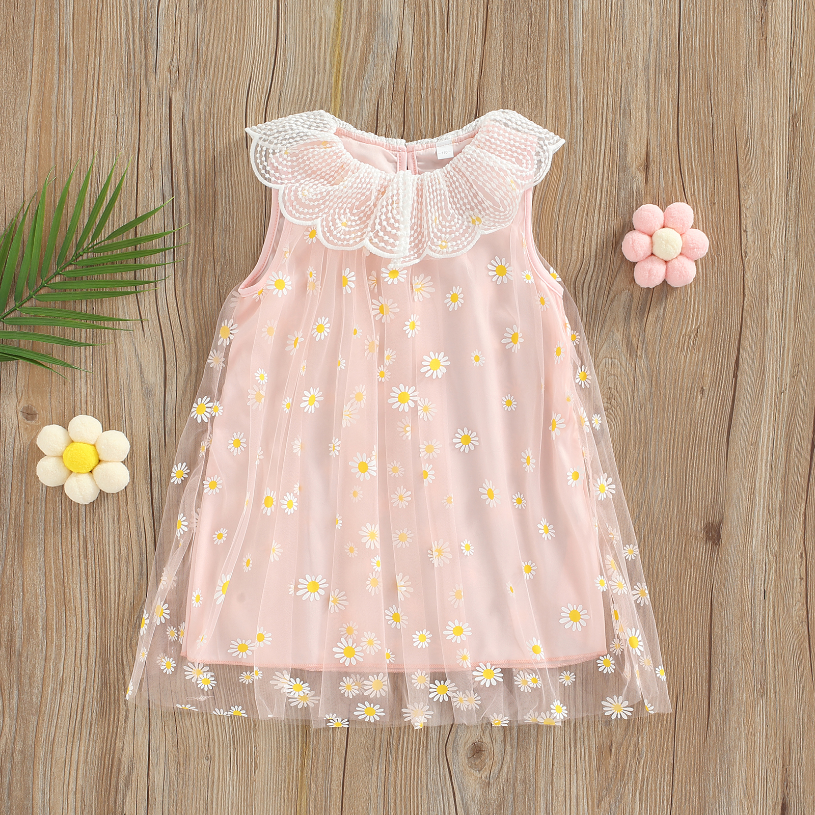 Детское Повседневное платье для девочек; Принт кукла Маргаритка; Сетчатое свободное короткое платье без рукавов