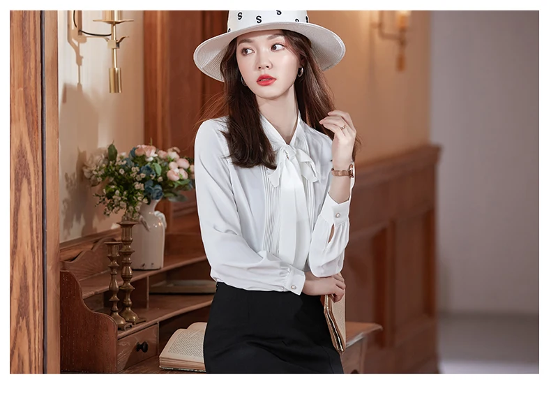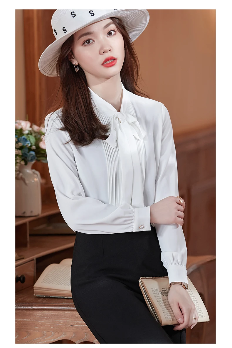 Элегантная Модная белая атласная рубашка женская шифоновая блузка с длинным