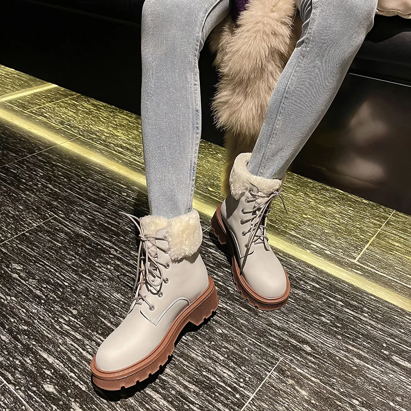 Женские зимние ботинки; SmallHut; Кожаные ботинки на шнуровке; Модные женские ботильоны; Цвет желтый, серый