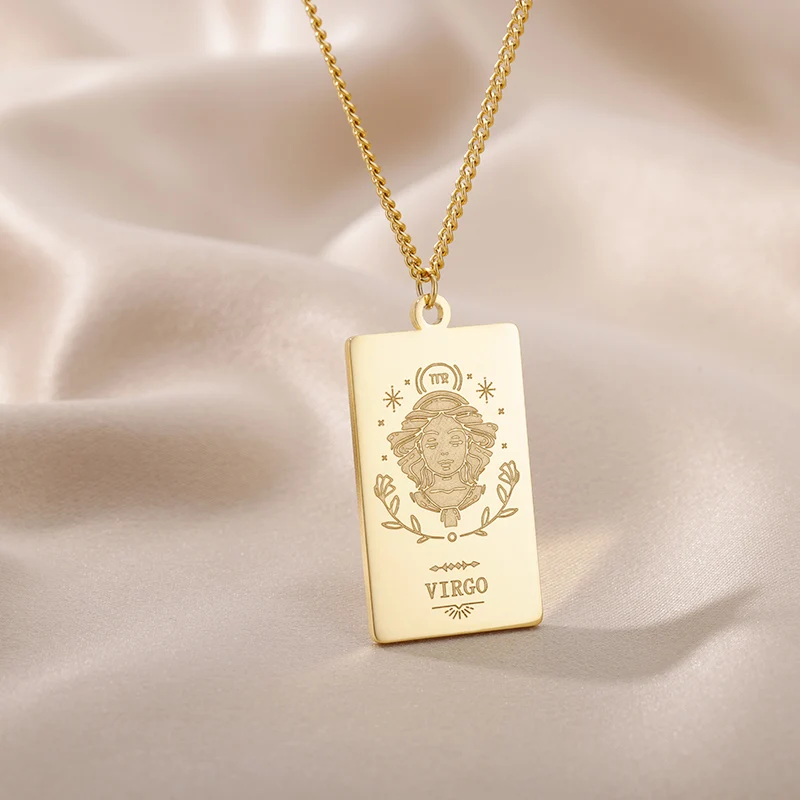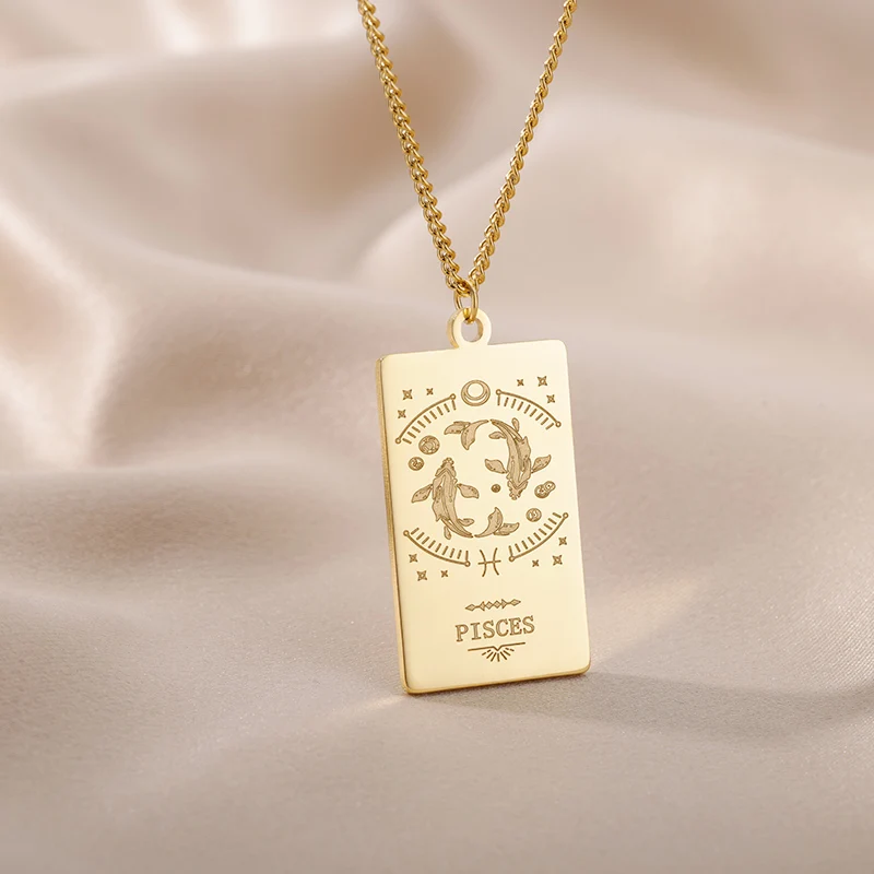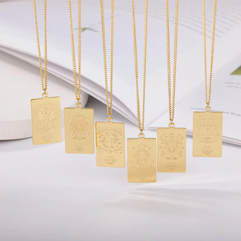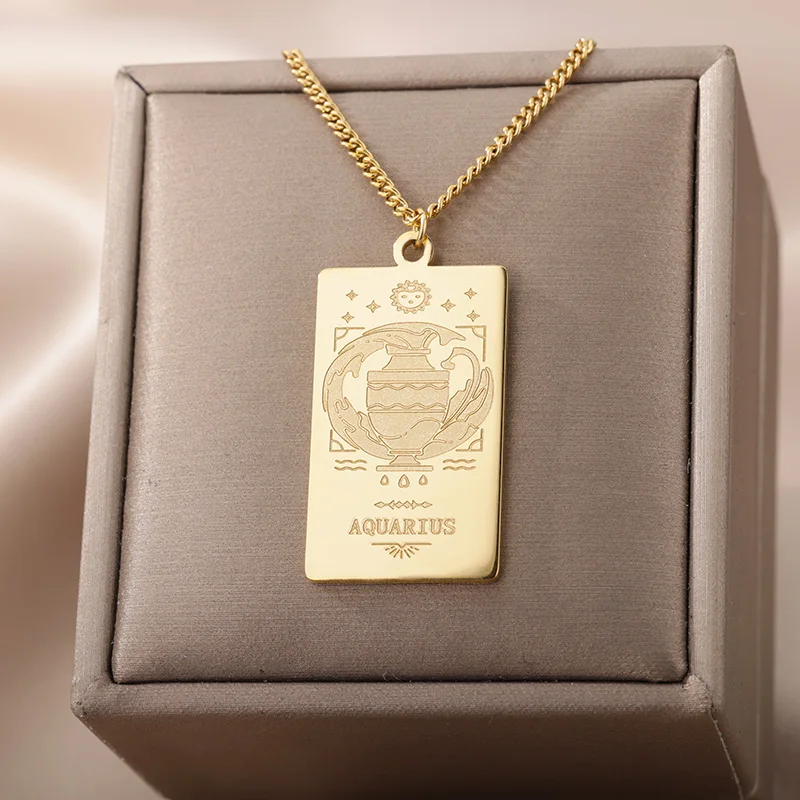 Ожерелья со зодиаком для женщин, Ретро стиль, нержавеющая сталь, золото, рак, Водолей, Лев, созвездие, цепочка, колье, ожерелье, готическое ювелирное изделие, подарок