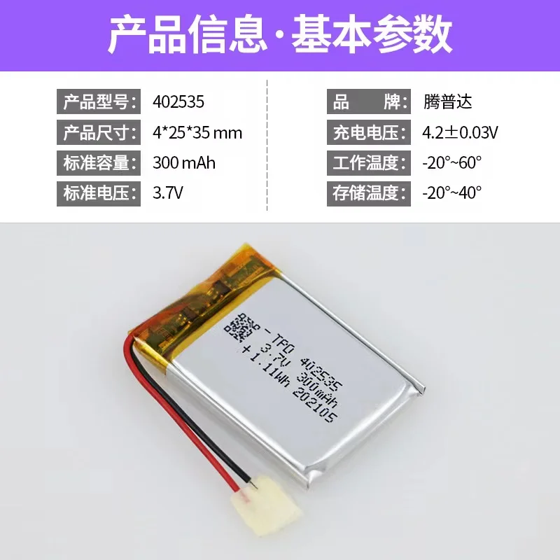 3,7 V 402535 общий одиночный автомобильный Интеллектуальный освежитель воздуха с распылителем 300mAh полимерный литиевый аккумулятор