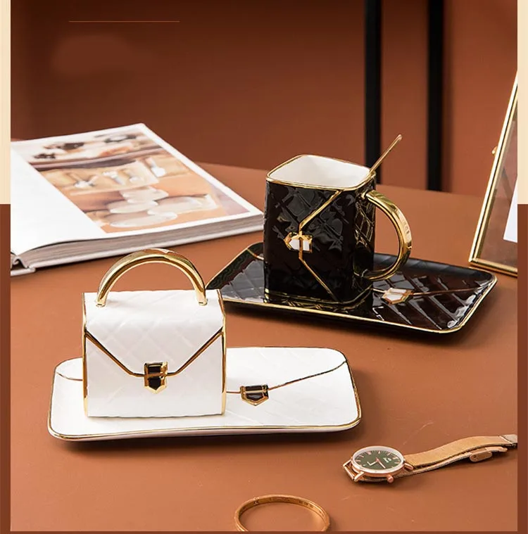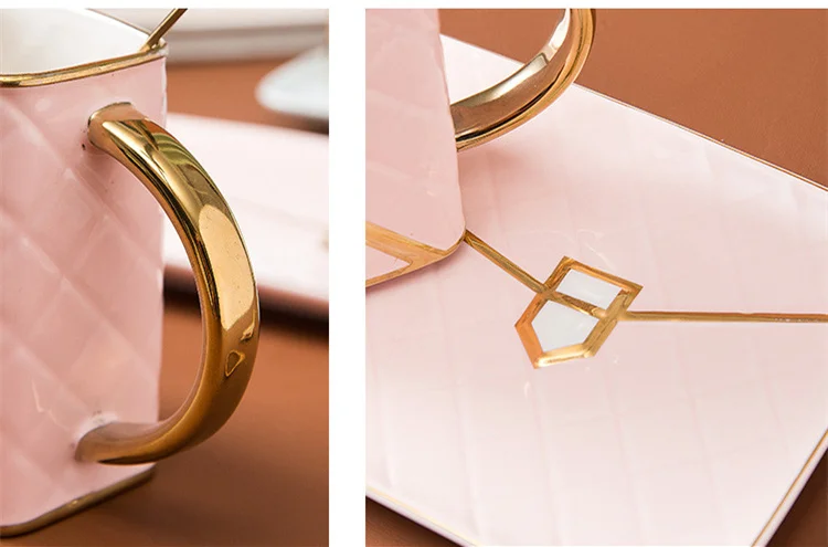 Набор кофейных чашек и блюдца золотистого цвета, кружка в форме мешка, чайные чашки и блюдца с ложкой, керамические кофейные чашки, чайный набор, подарочная коробка