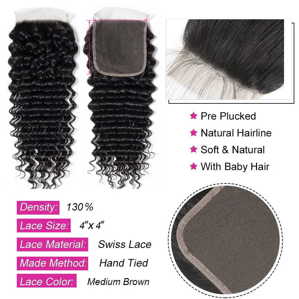 Милые волосы, свободные, глубокая волна, пряди с фронтальной застежкой, 100% человеческие волосы, плетение, 3 пряди, волосы Remy