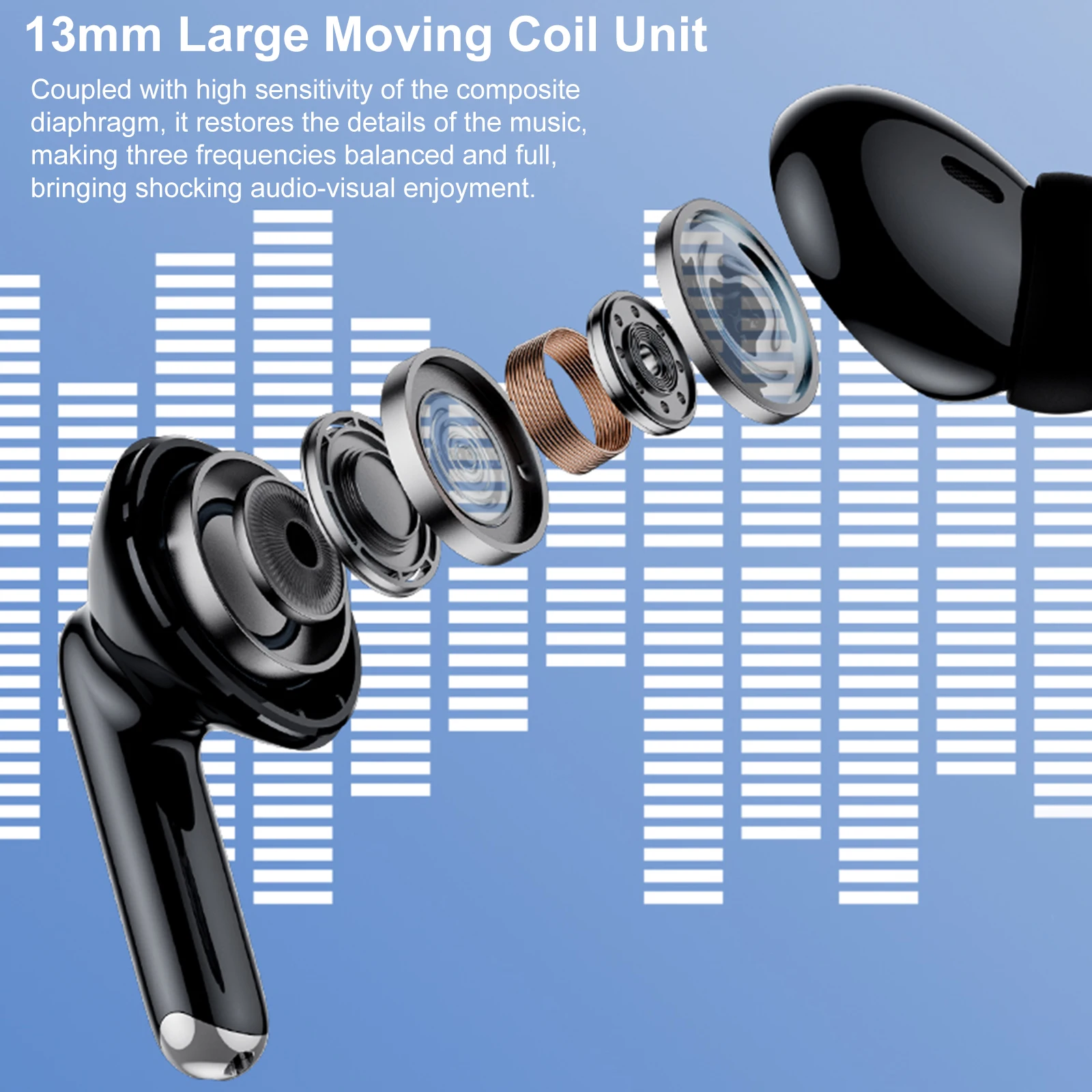 Технология BT 5,3 обеспечивает высокую скорость передачи данных, стабильную производительность и низкое энергопотребление. С помощью технологии true wireless stereo вы можете использовать гарнитуру исключительно или использовать их в паре. Оснащен зарядным устройством емкостью 250 мАч для хранения и зарядки наушников. Встроенный микрофон обеспечивает более четкий и реалистичный звук. Это принесет вам идеальный пользовательский опыт.