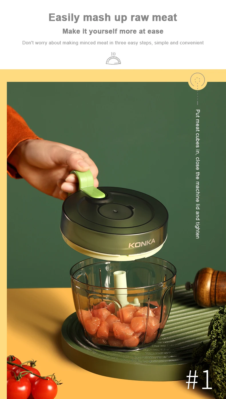 Кухонная утварь KONKA ручной измельчитель для еды измельчитель для овощей измельчитель для лука и чеснока бытовой ручной Мясорубка ручной измельчитель с 3 лезвиями и блендер овощерезка