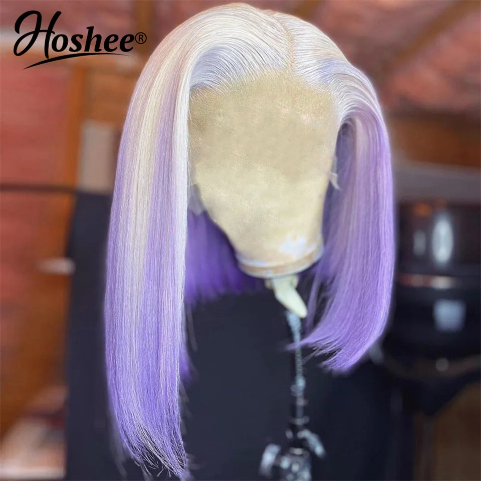 T серый фиолетовый цвет короткий Боб кружевные передние парики