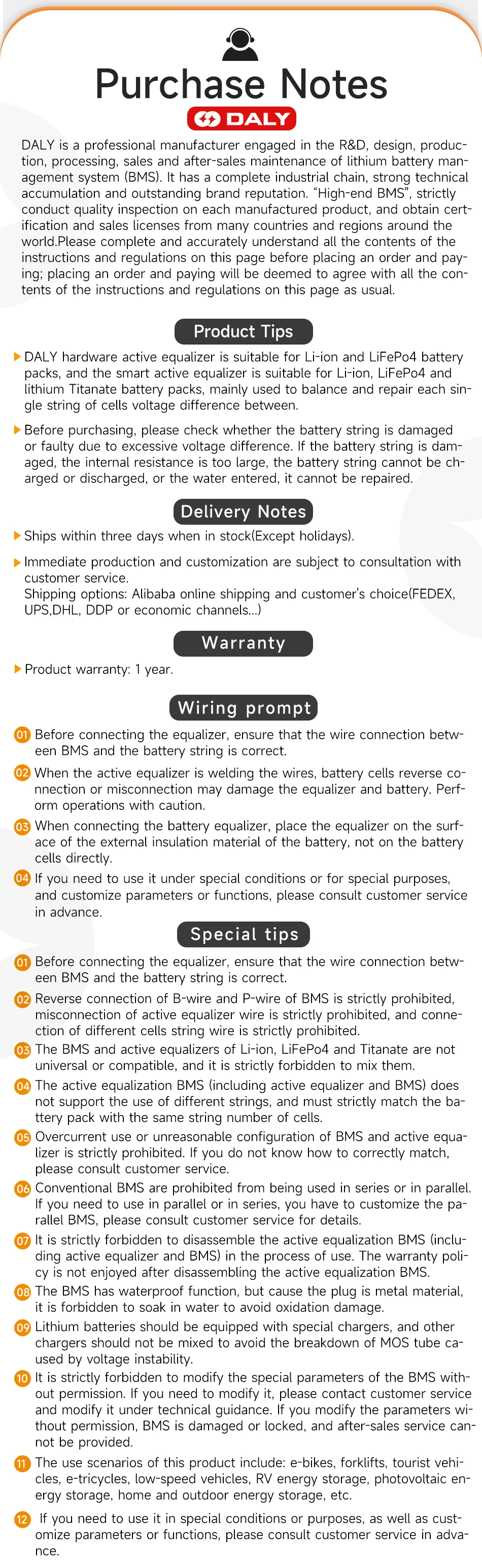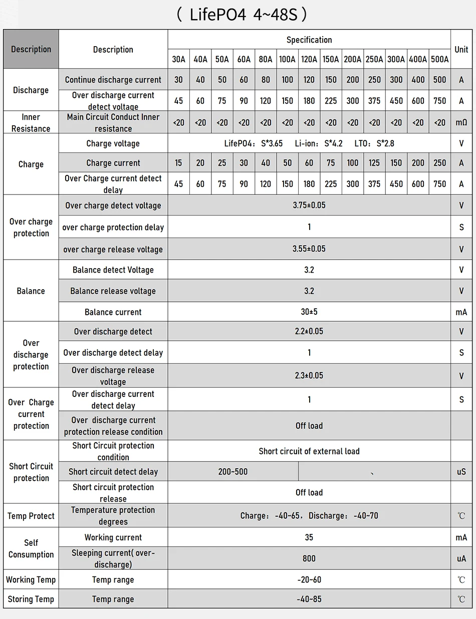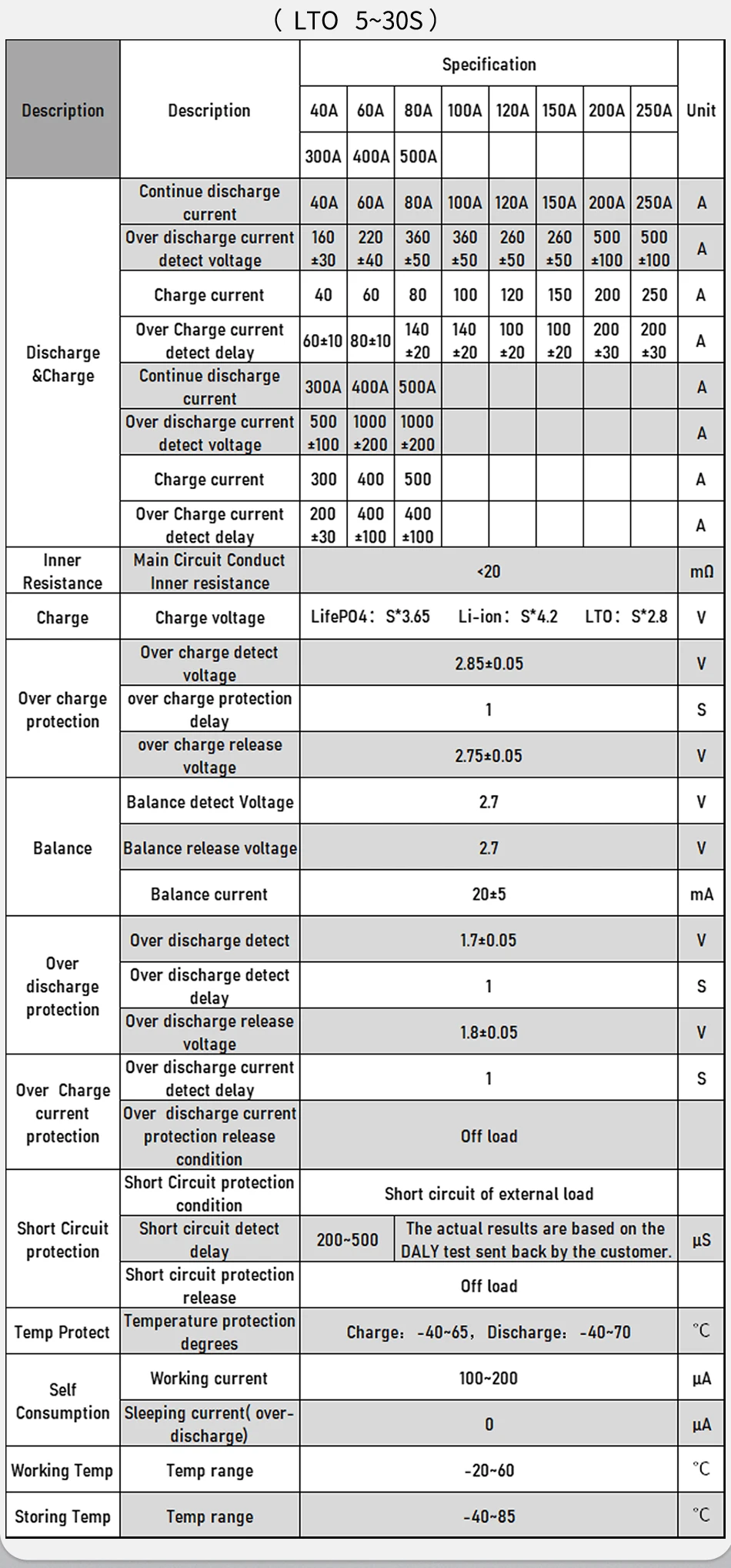 BMS SMART BMS DALY LIFEPO4 Li-Ion 18650 LTO