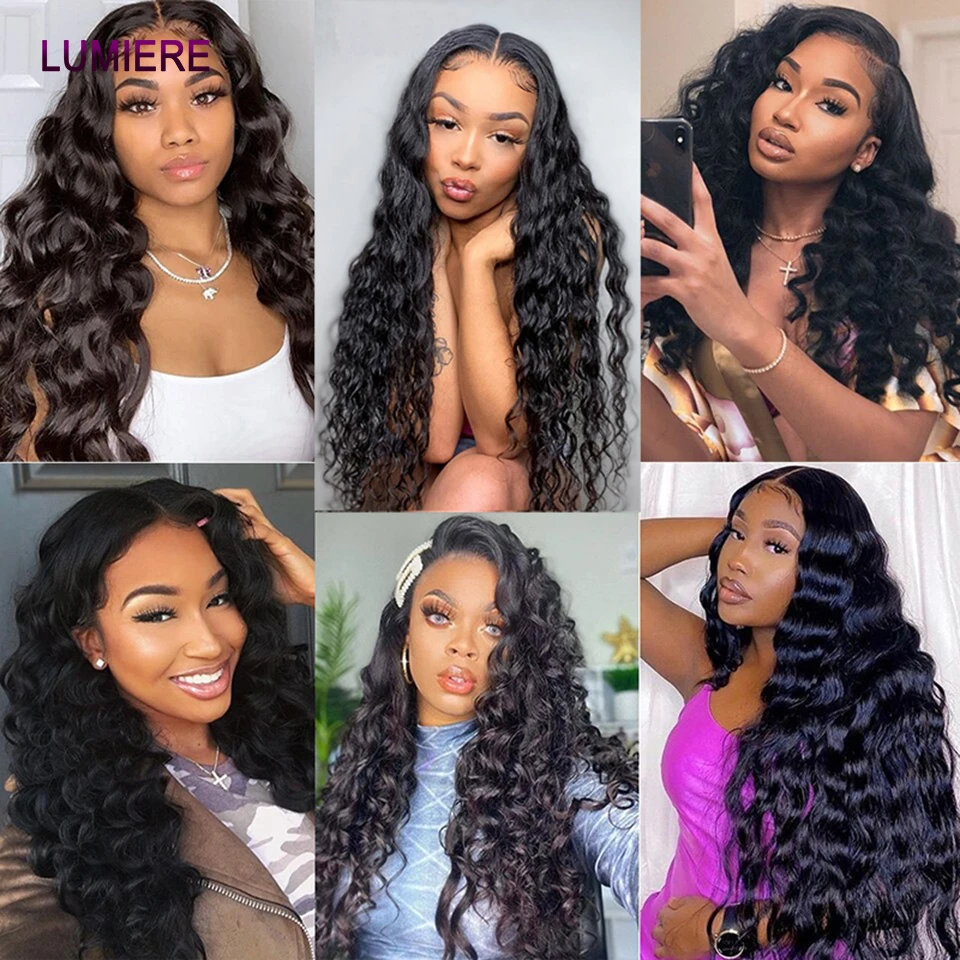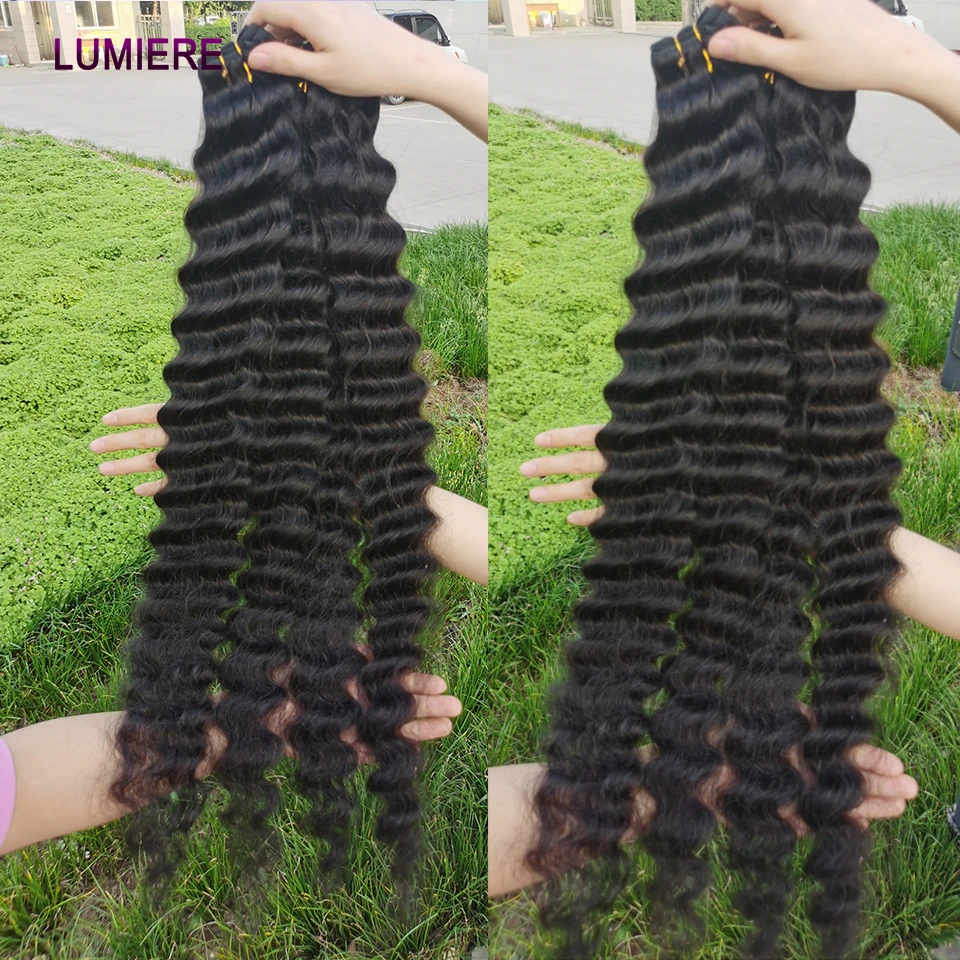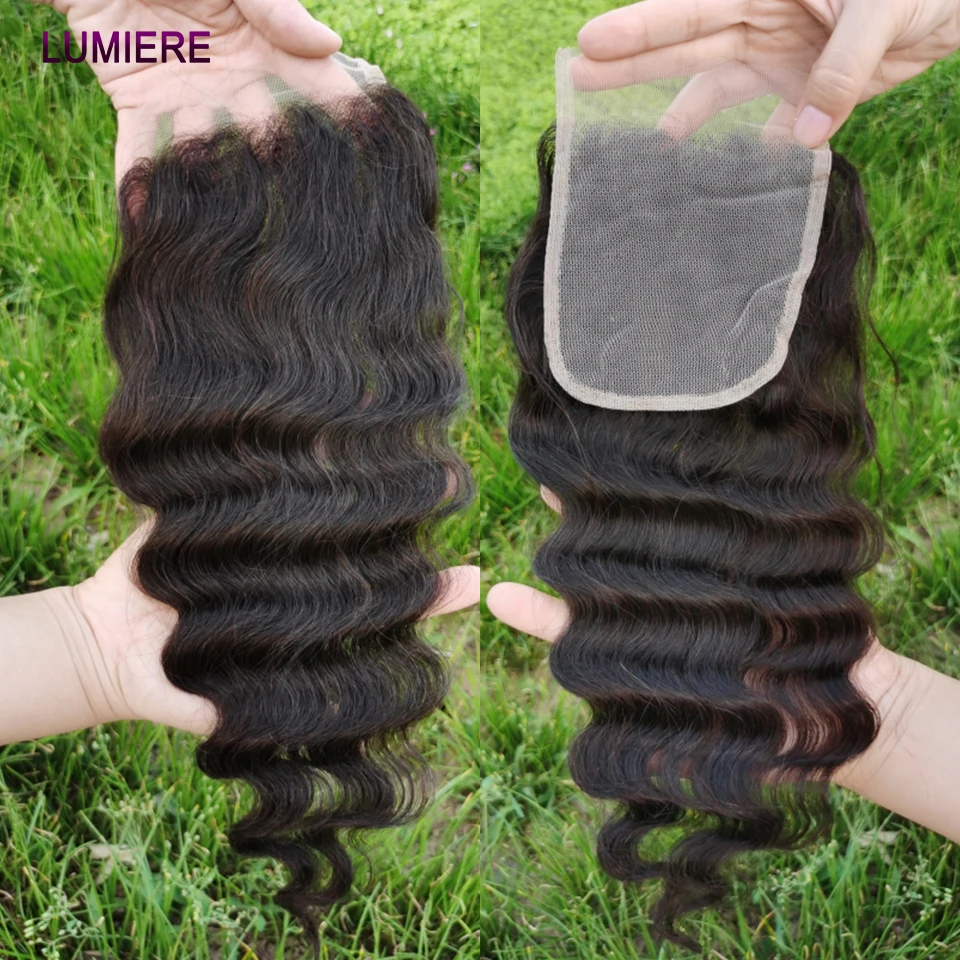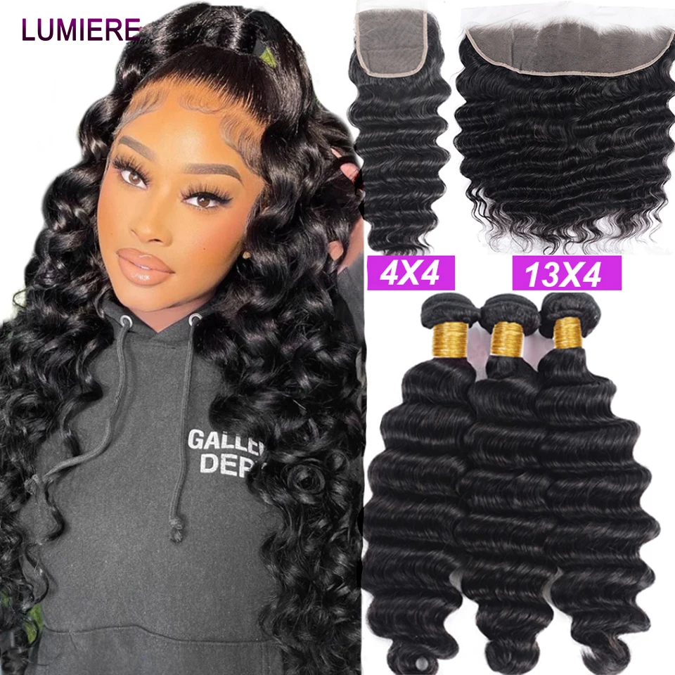 32 38 40 дюймов свободная глубокая волна пряди с закрытием перуанские пряди с закрытием Remy 100% человеческие волосы пучок с фронтальной Lumiere