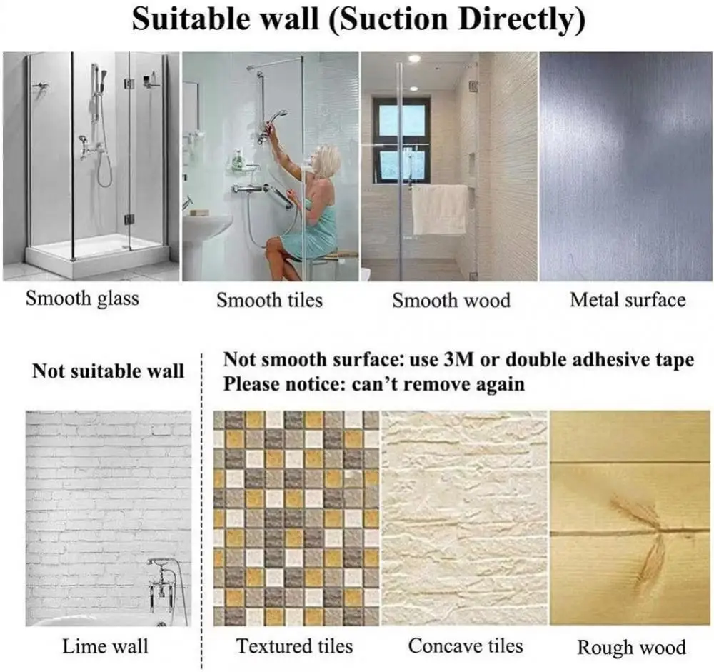 【Широкая область применения-присоска для душа подходит для гладких поверхностей, таких как керамическая плитка, стекло, гладкая древесина, гладкие металлические поверхности и т. д., и подходит для извести стен, обоев, И стены с разной неровностью.