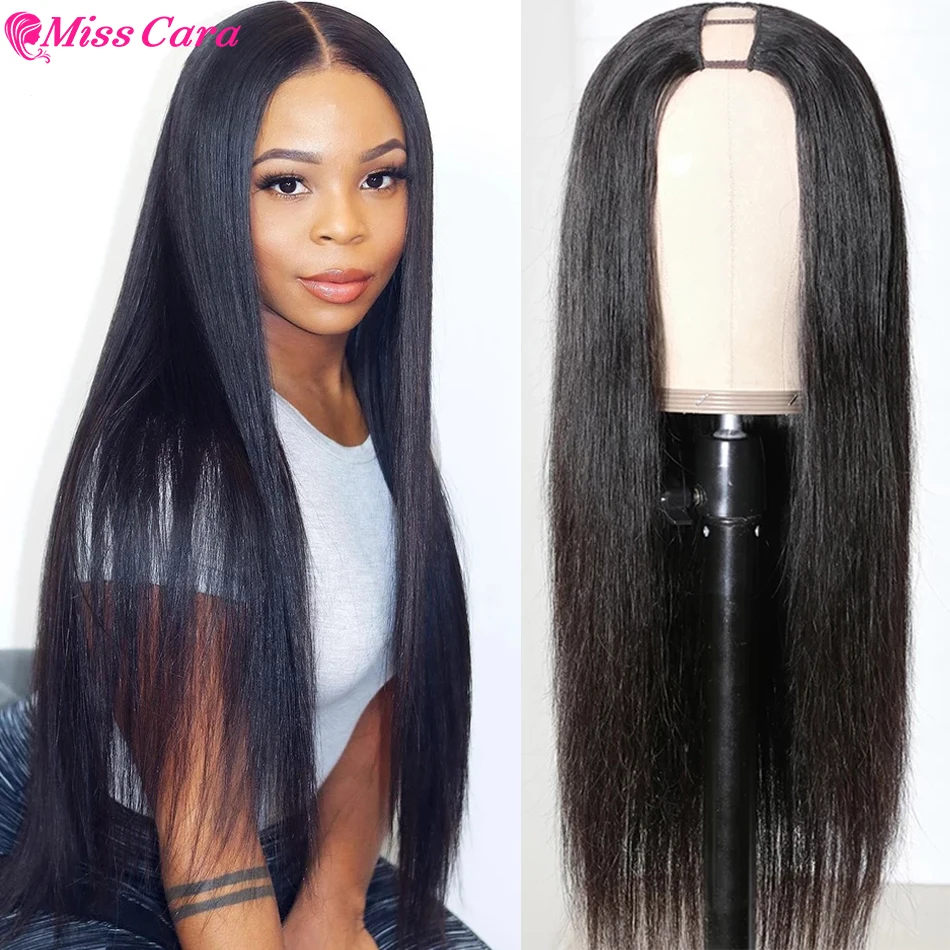 Прямые u-образные парики из человеческих волос, без клея, без швов, парики для женщин, прямые u-образные парики средней части, бразильские прямые парики с v-образной частью