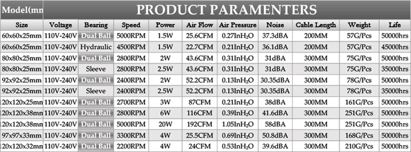ЕС двойной шар бесщеточный 60 мм 80 мм 90 мм 120 мм вентилятор охлаждения AC 110V - 240V