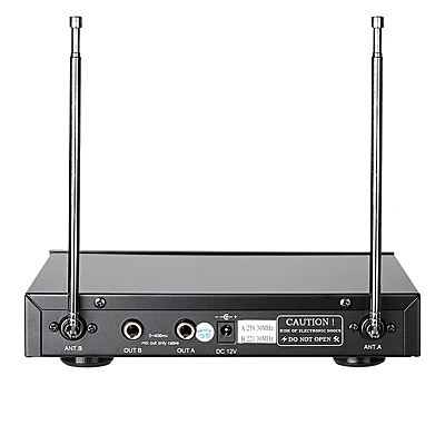 | | • Двухканальный беспроводной микрофон VHF • Характеристики динамической капсулы высокого качества и подключения к цепи Отличное качество звука |