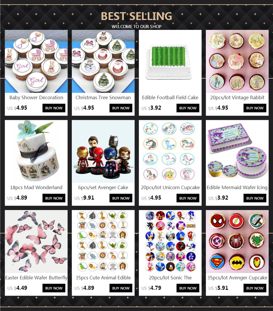 Обратите внимание: Все изделия, изготовленные из вафельной бумаги, могут быть предварительно обрезаны, но глазурь не может.