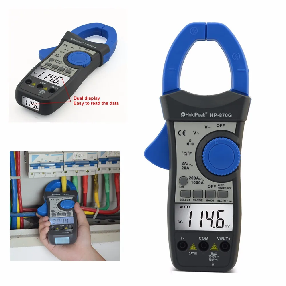 HoldPeak HP-870G Автоматический диапазон постоянного/переменного напряжения переменного тока цифровой токоизмерительный мультиметр