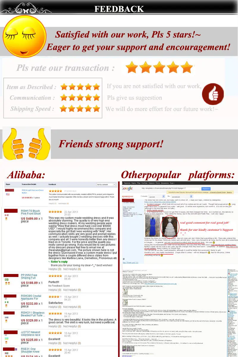 Yiaibridal: Direct Factory, Customized job, one on one, without indirect fees. The quality depends on the price, you can feel relieved with our transaction. Most of your money will be spend on your dress and the salaries of the experienced workers and the international shipping fees.