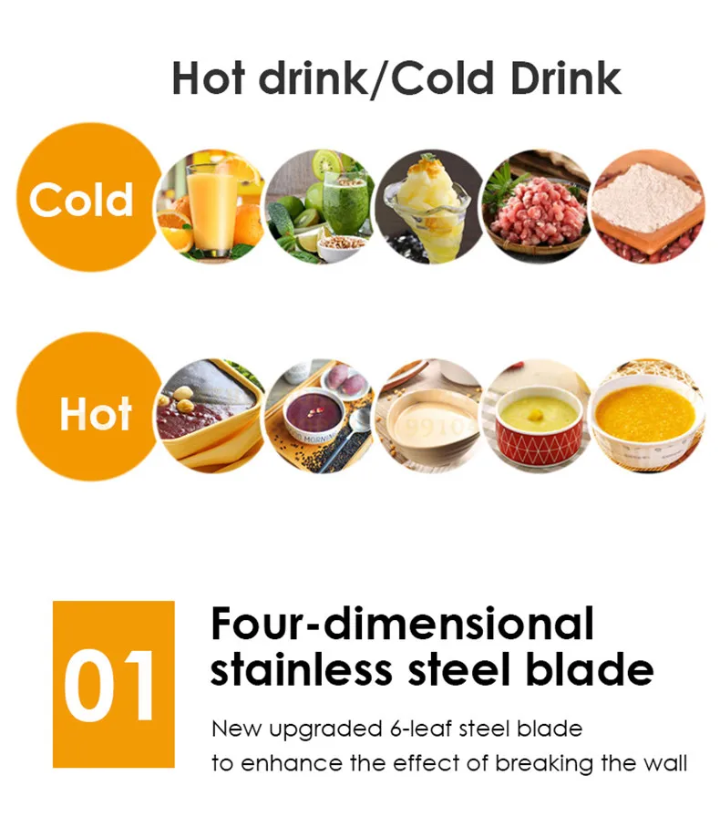 48000 об/мин, высокая мощность 1500 Вт, высокоскоростное разбивание и разбивание стены, высвобождение питательных веществ в пище;