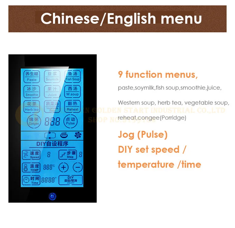 Функции: паста, соевое молоко, рыбный суп, смузи, сок, чай, овощной суп, перегрев, конджи, фрезерование, молотое мясо...