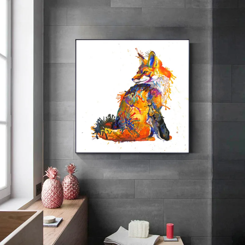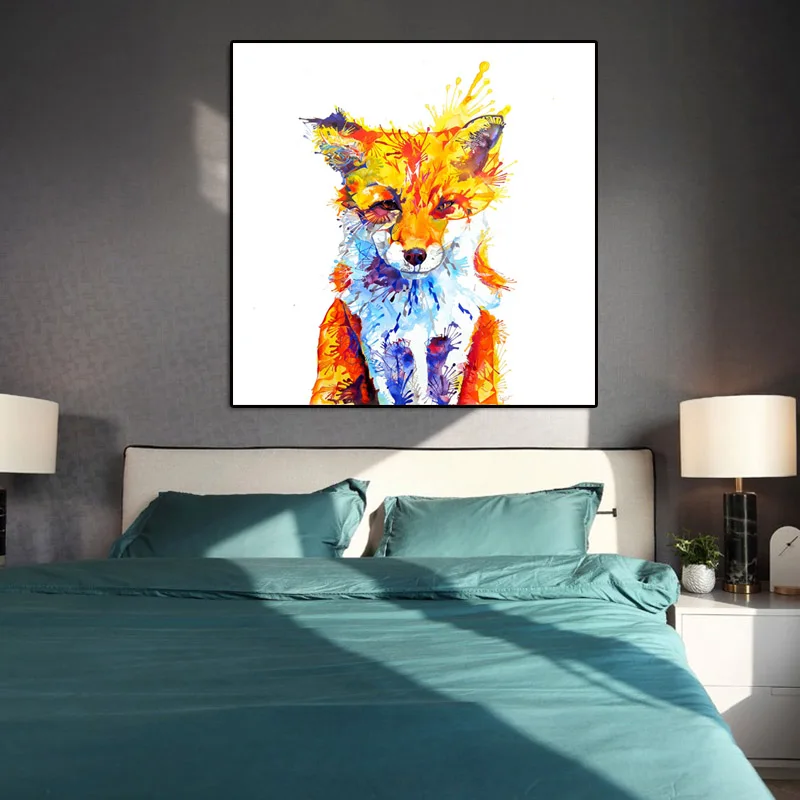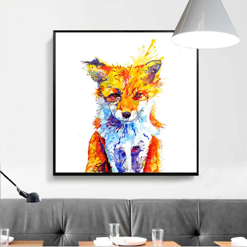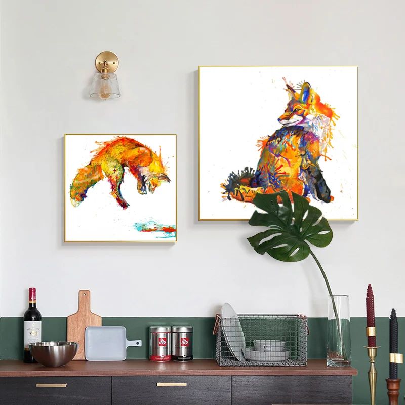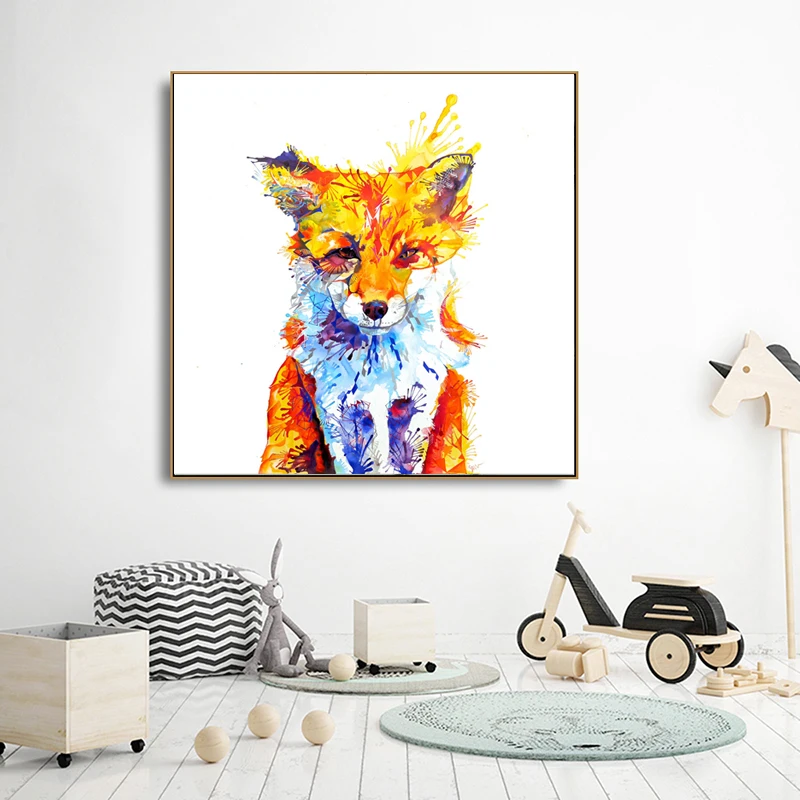 Современная Настенная живопись на холсте, акварельные постеры с животными и принтами, абстрактная лиса, Настенная картина для детской комнаты, украшение без рамки, квадрат