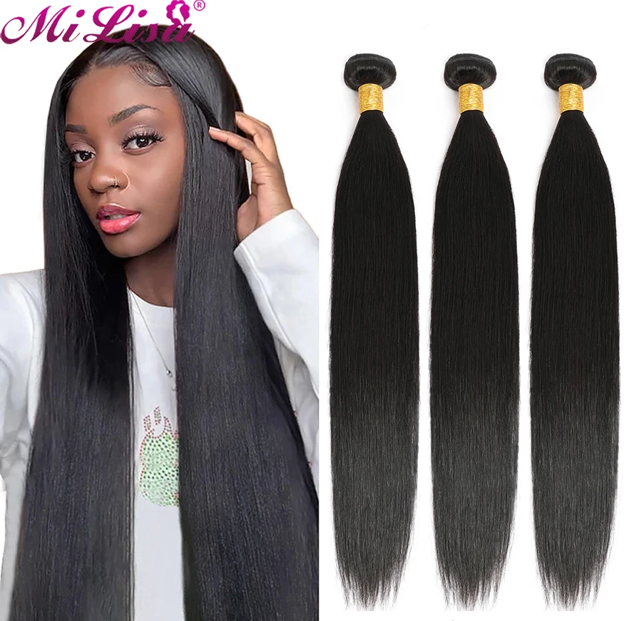 Прямые волосы, пряди, Remy, человеческие волосы, 1 пучок, 10- 30 дюймов, натуральные, Mi Lisa, бразильские прямые волосы для наращивания, можно купить 2, 3, 4 пряди по выгодной цене