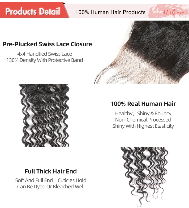 Наименование товара: 4x4 глубокая кружевная застежка Бренд: Ali Queen Hair Products Co., Ltd Цвет волос: натуральный черный цвет, может быть окрашен и отбелен. Уход за волосами: свободная часть Длина волос: 10 "~ 20" Материал волос: высокое качество человеческих волос Время доставки: около 2-5 дней по DHL/FEDEX Характеристика: здоровая, полная и упругая текстура