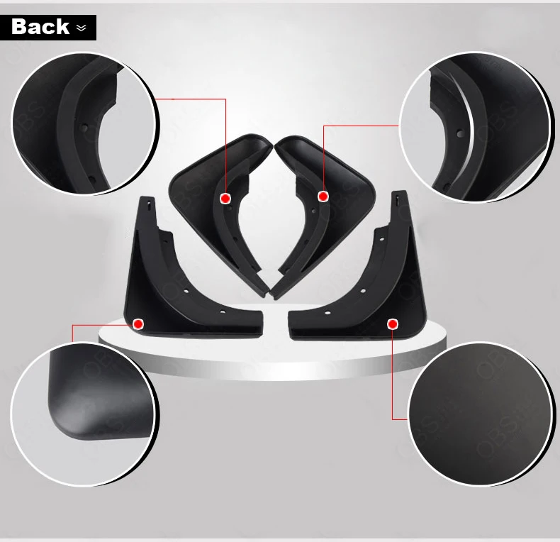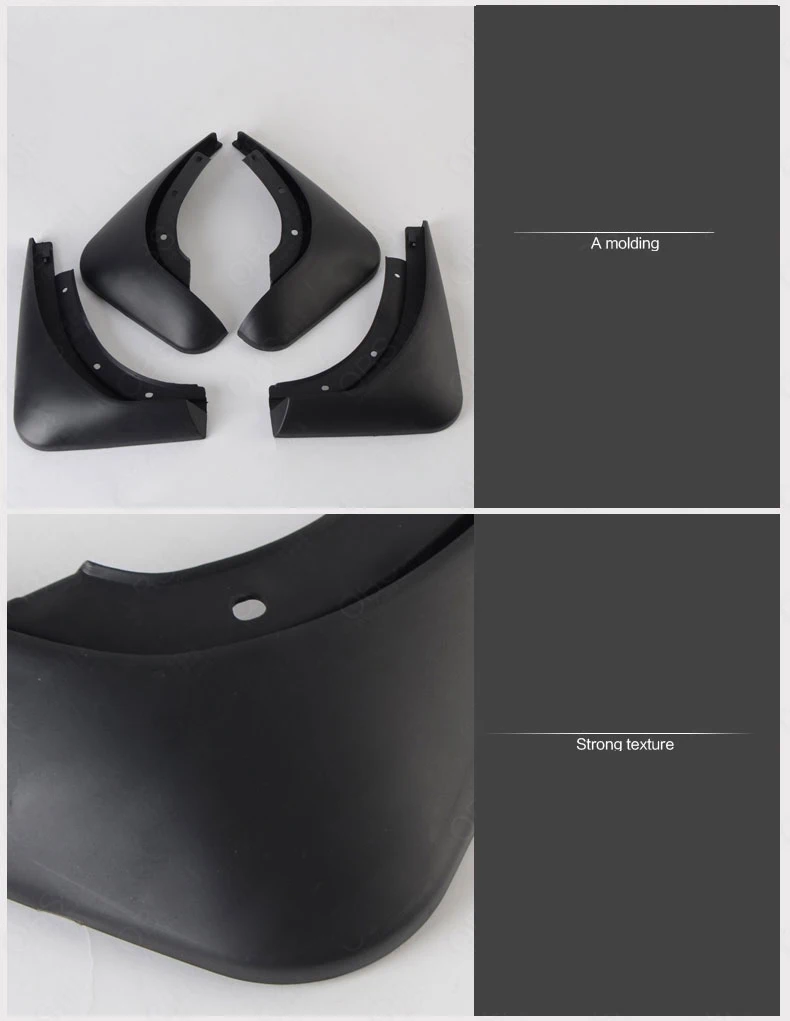Включает в себя набор из 4 брызговиков, 2 задних и 2 передних, они индивидуально адаптированы для вашего автомобиля!
