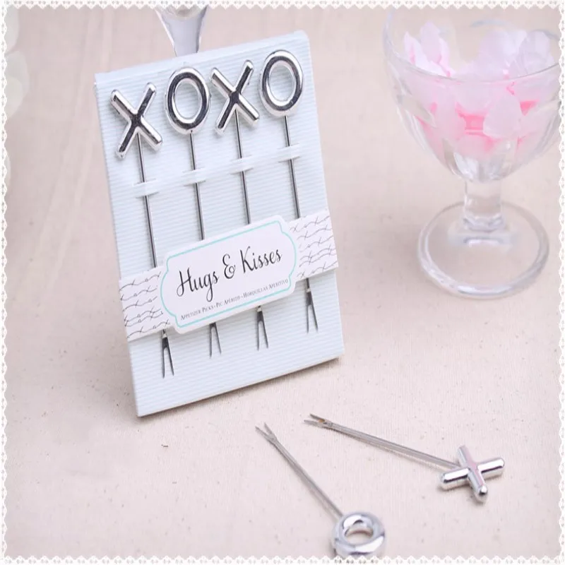 ProНазвание пыли: Оптовая продажа, 50 шт./лот, XOXO, нержавеющая сталь, вилки для фруктов, свадебные сувениры, праздничные подарки для гостей, свадебные сувениры, события и вечерние принадлежности
