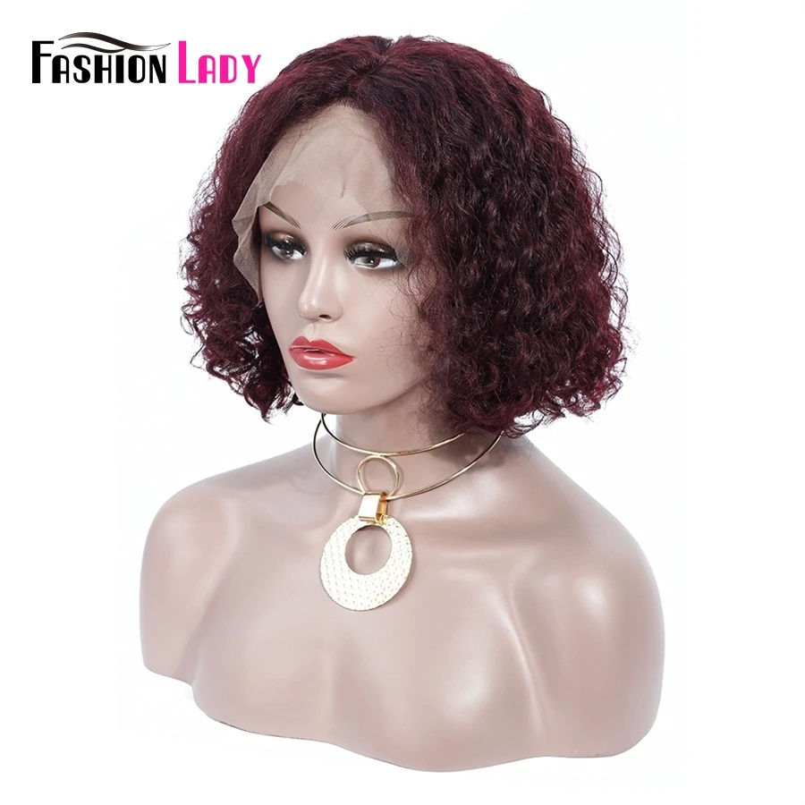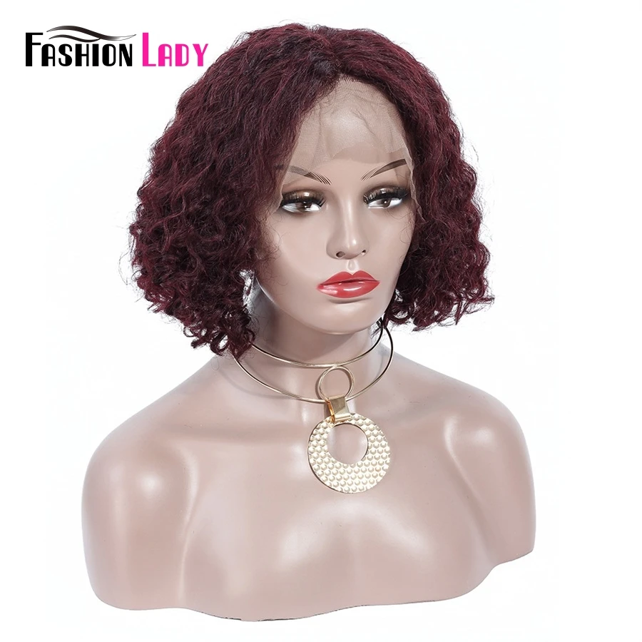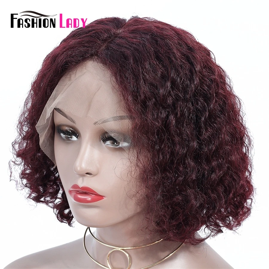 Модные женские бордовые парики из натуральных волос на фронте с кружевом, Короткие парики с Бобом, парики из вьющихся волос для черных женщин