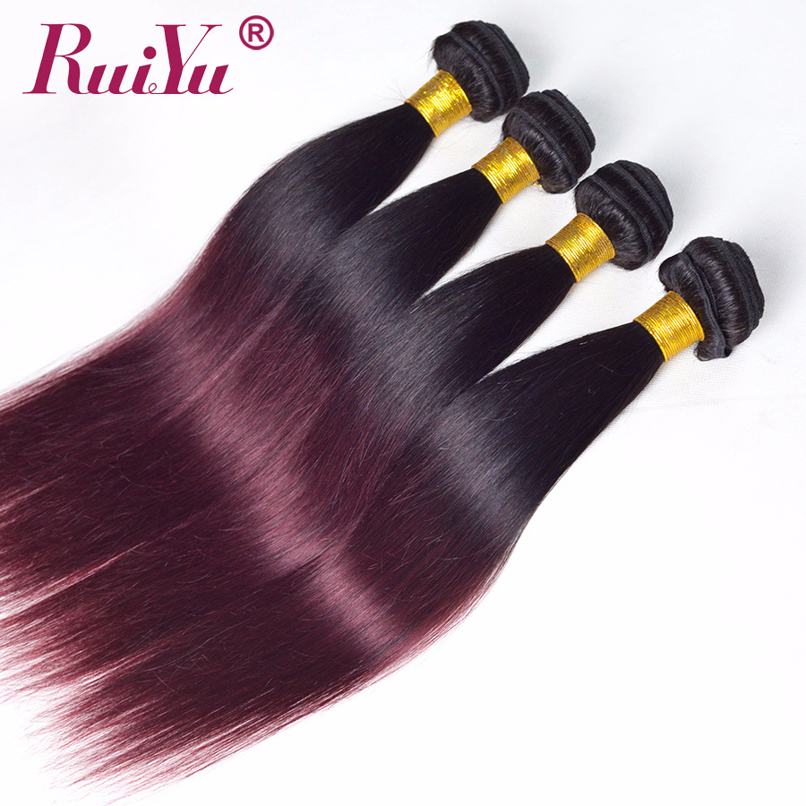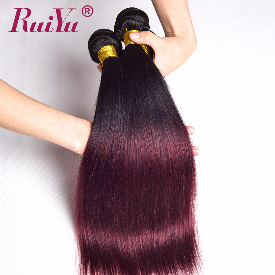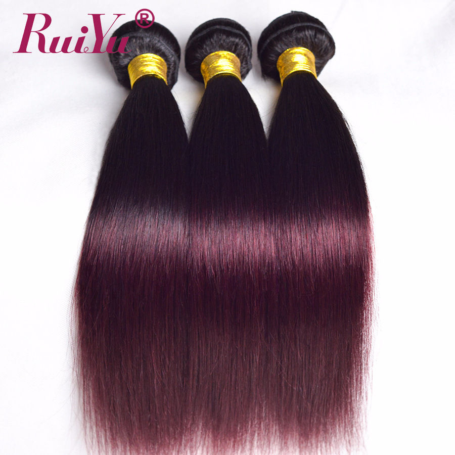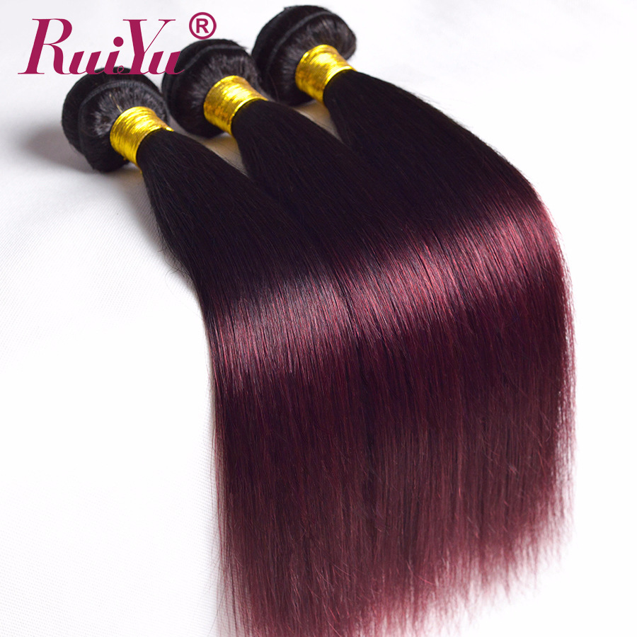 RUIYU Ombre Brazilian Straight Hair 1b/Burgundy Two Tone Ombre Hair Weave 3 Bundles Deals 99J Red Non Remy Human Hair Extensions