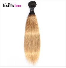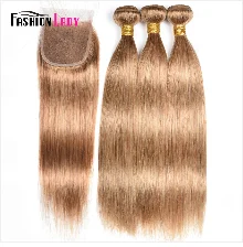 Fashion Lady Pre-Colored 3 Bundles With Closure Peruvian Human Hair Straight Blonde Color 27# With Lace Closure Non-Remy Hair