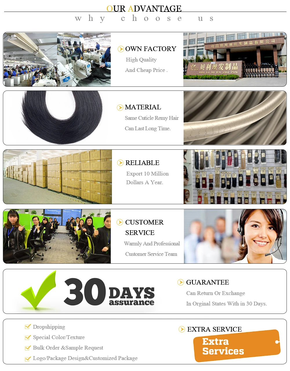 Что касается запаха, мы обещаем отсутствие химического запаха кукурузы, наши волосы на 100% не содержат химикатов, мы заботимся не только о красоте, но и о здоровье наших клиентов! Но мы моем волосы, когда производим их, они могут иметь местный запах шампуня на нем, в любом случае, он поднимет ваш шампунь и запах кондиционера вскоре после совместной стирки, вы можете повесить его на улицу, сделать его естественным сухим, это будет лучше. В любом случае, у нас также есть отличное послепродажное обслуживание, если у волос действительно есть какие-либо проблемы, мы постараемся сделать все возможное, чтобы помочь вам. И, конечно, вы можете вернуть его в течение 30 дней без причины. Спасибо за понимание.