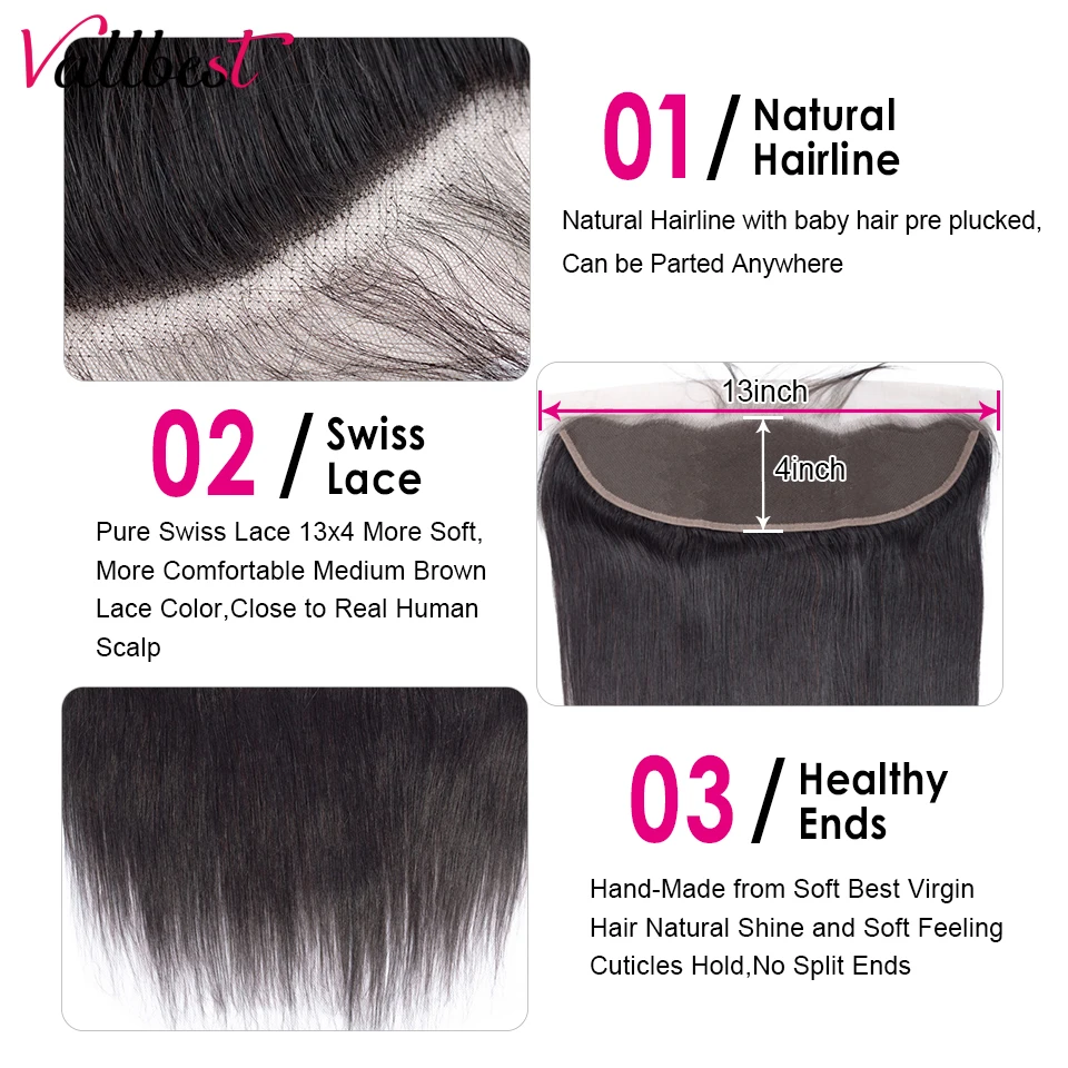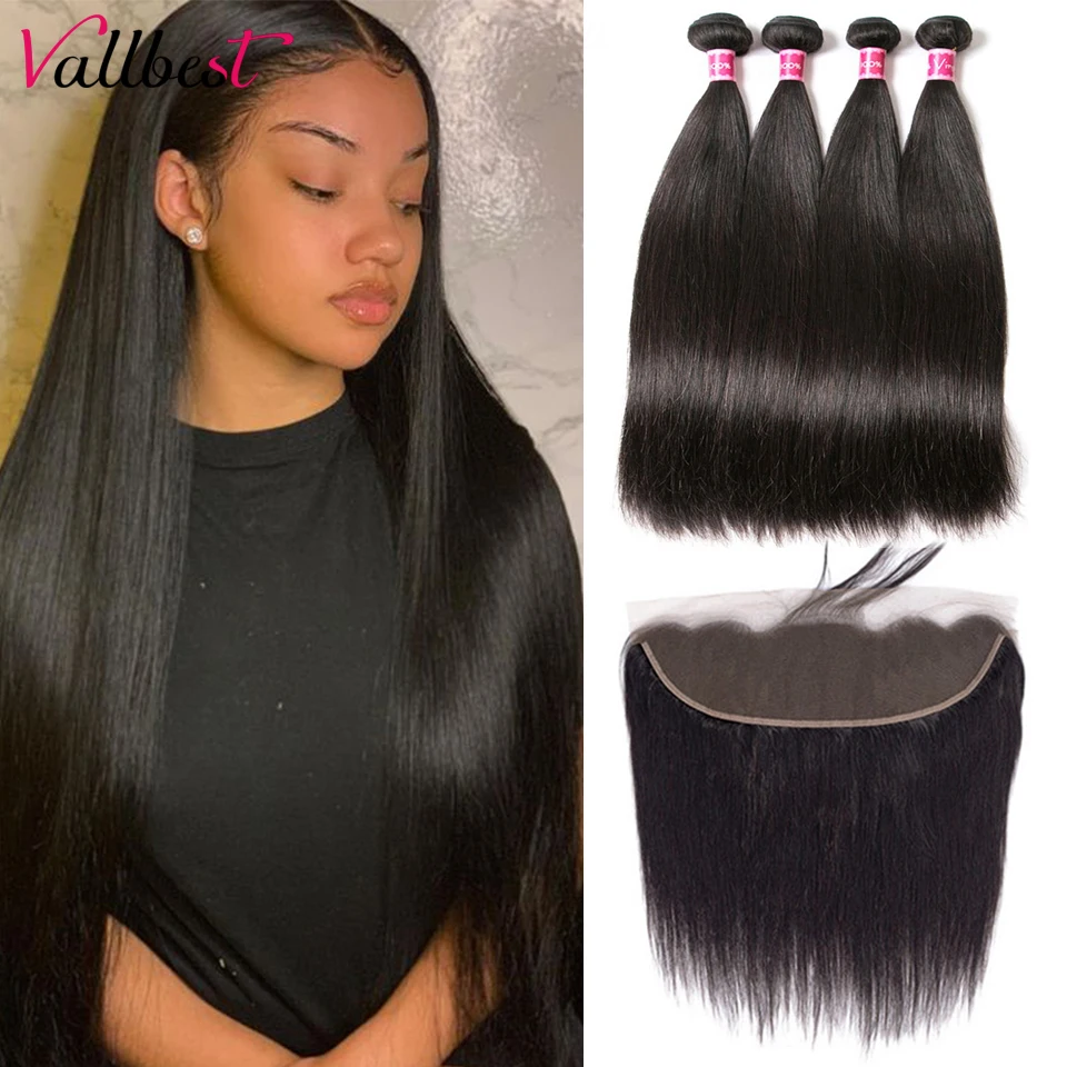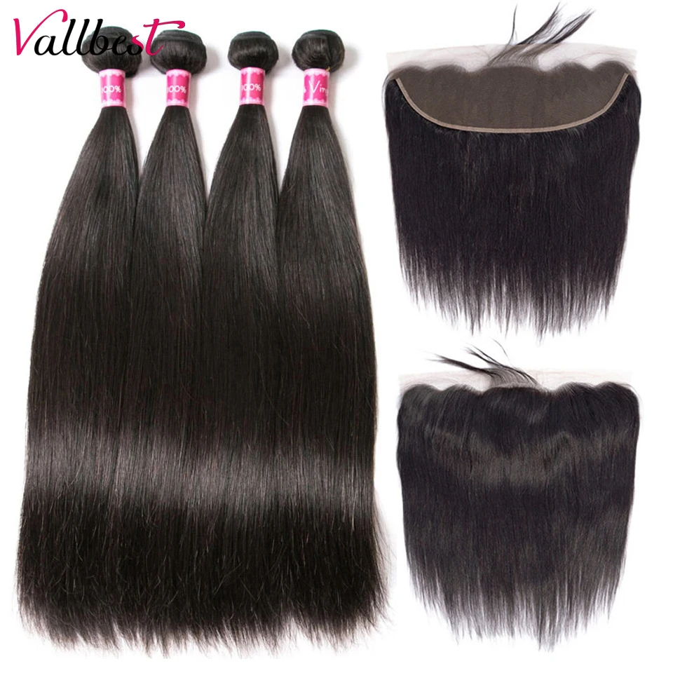 Vallbest человеческие волосы прямые 4 пряди с фронтальным бразильским плетением пряди с закрытием Remy Кружева Фронтальные с пряди 1B #