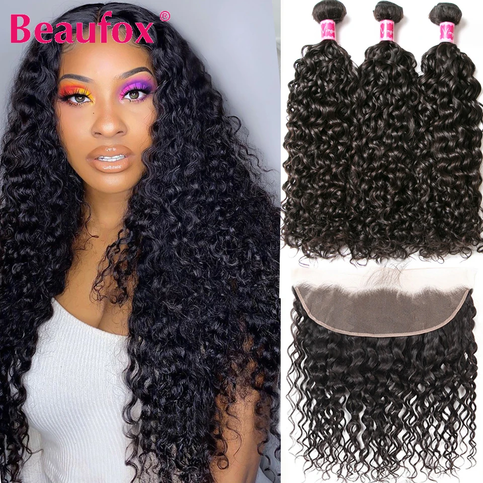 Beaufox малазийские волнистые 3 пряди с кружевной фронтальной застежкой, человеческие волосы, волнистые кружевные фронтальные волосы с пряди Remy
