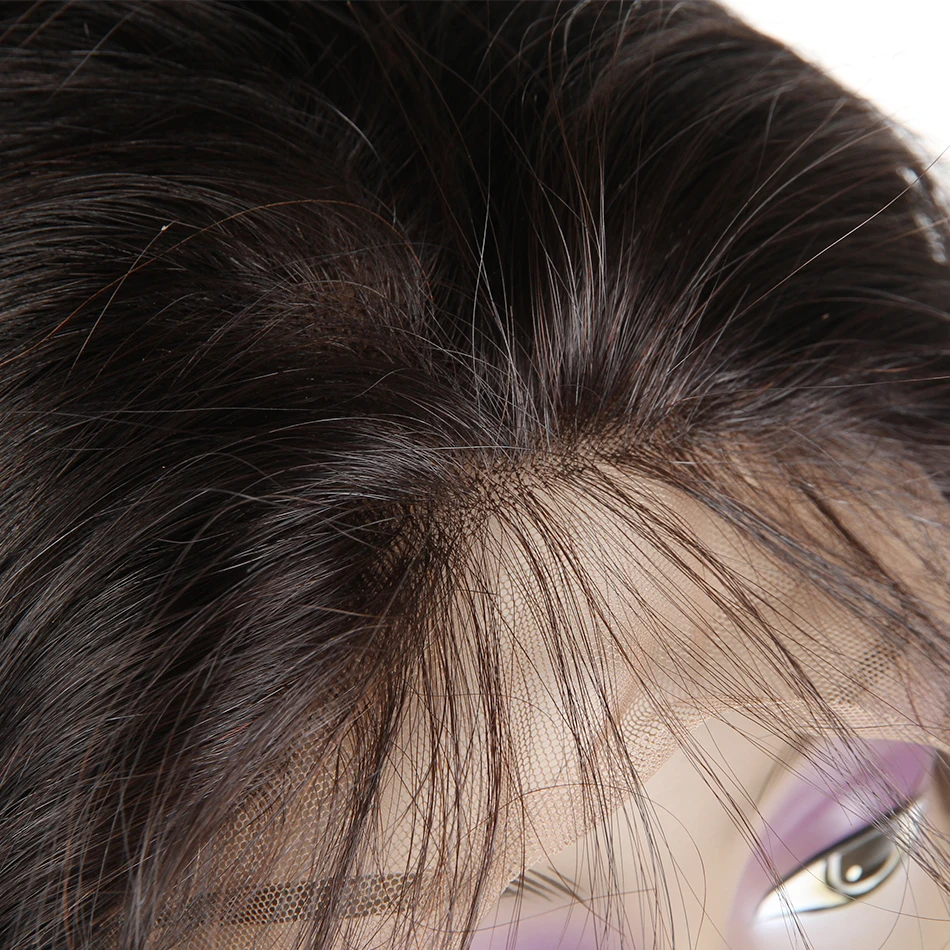 Перуанские прямые человеческие волосы с фронтальной застежкой, предварительно выщипанные волосы с детскими волосами, средний коричневый цвет кожи 13*4