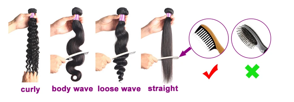 Наши волосы сделаны вручную, поэтому, пожалуйста, используйте расческу с широкими зубчиками для прямой, волнистой формы, рассыпчатой волны. Для вьющихся волос, не используйте гребень, пожалуйста, используйте руку, чтобы аккуратно захватить волосы.