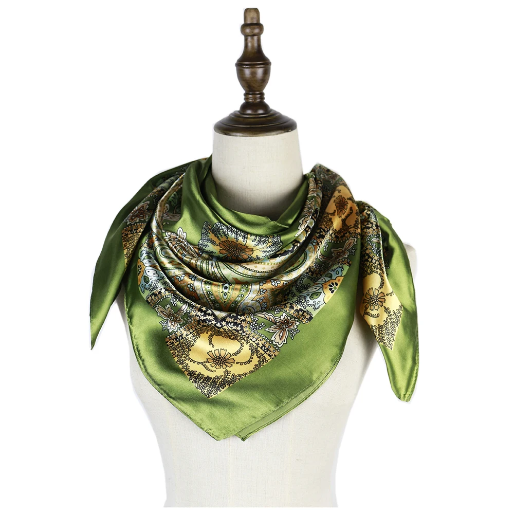 Женский хиджаб шарф грациозный Пейсли атласная шелковая бандана винтажный Bufanda Mujer арабский Красный 90 см в наличии Пашмина